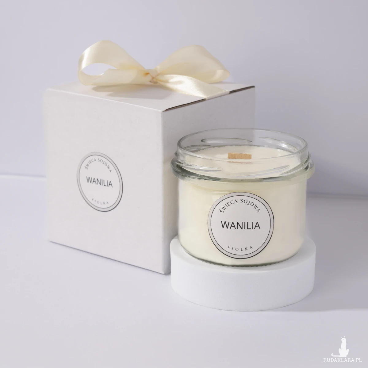 Świece sojowe wykonane z ogromnym sercem! 100% wosk sojowy. Pojemność słoika 235 mlŚwiece pakowane są w białe pudełko z wypełnieniem, zapałkami oraz instrukcja palenia. Całości uroku dodaje kokardka.