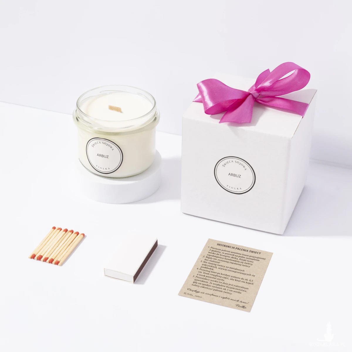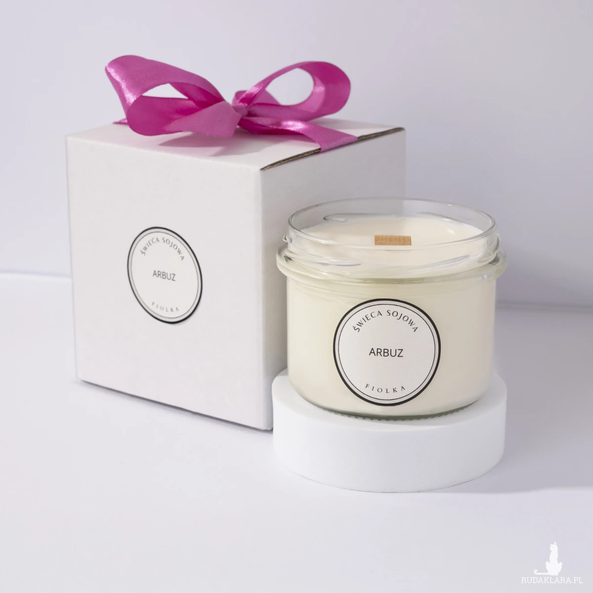 Świece sojowe wykonane z ogromnym sercem! 100% wosk sojowy. Pojemność słoika 235 mlŚwiece pakowane są w białe pudełko z wypełnieniem, zapałkami oraz instrukcja palenia. Całości uroku dodaje kokardka.