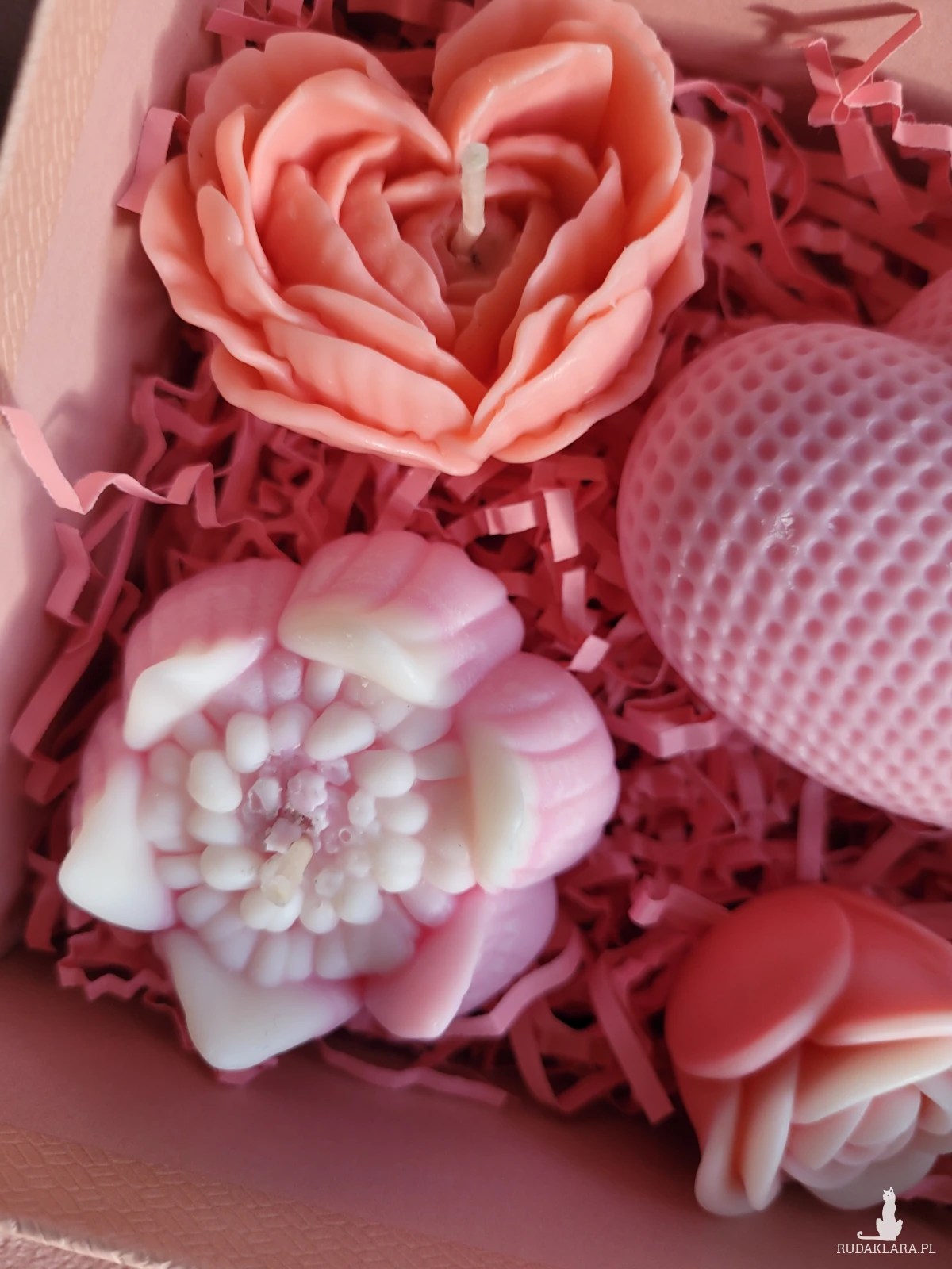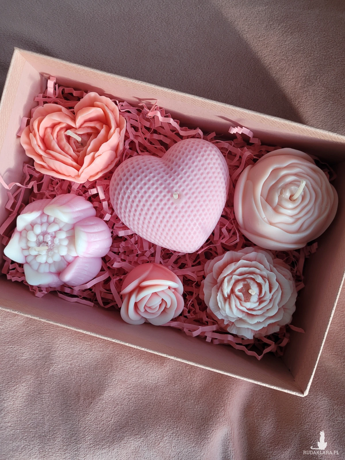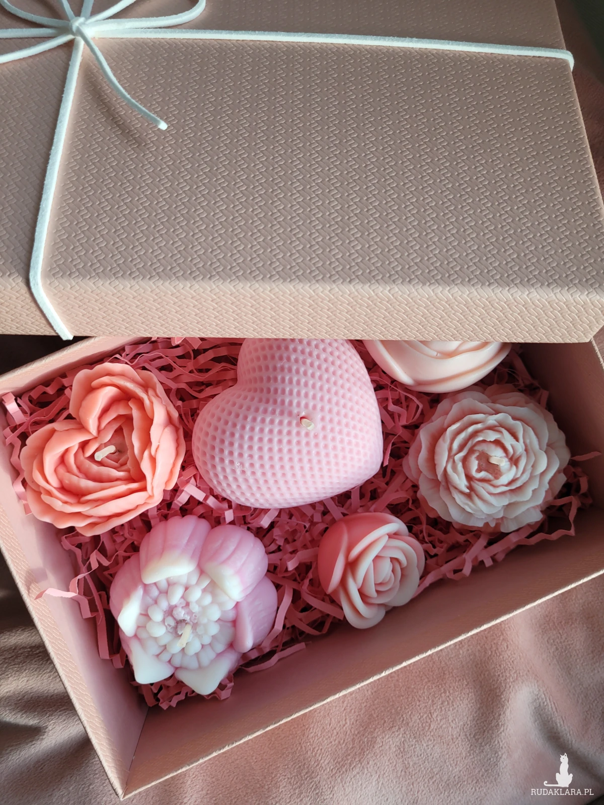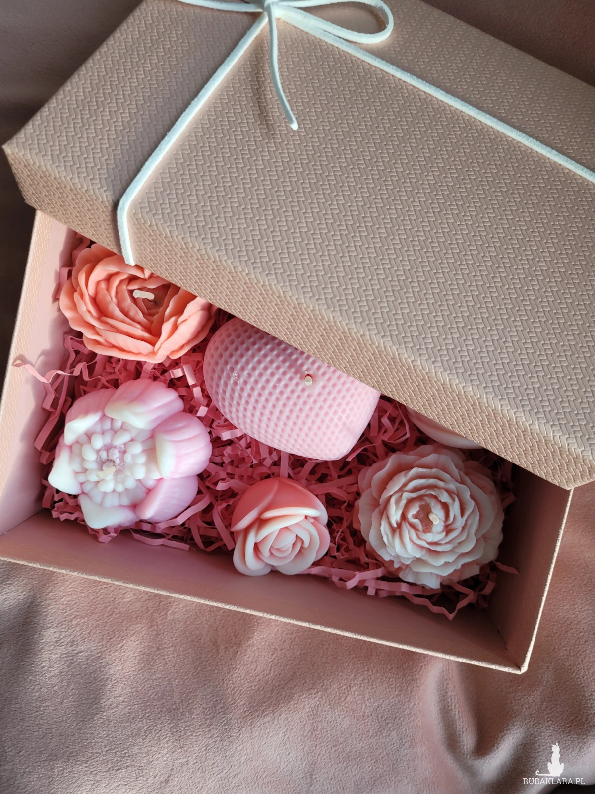 Uroczy box upominkowy ze świecami sojowymi kwiatami.