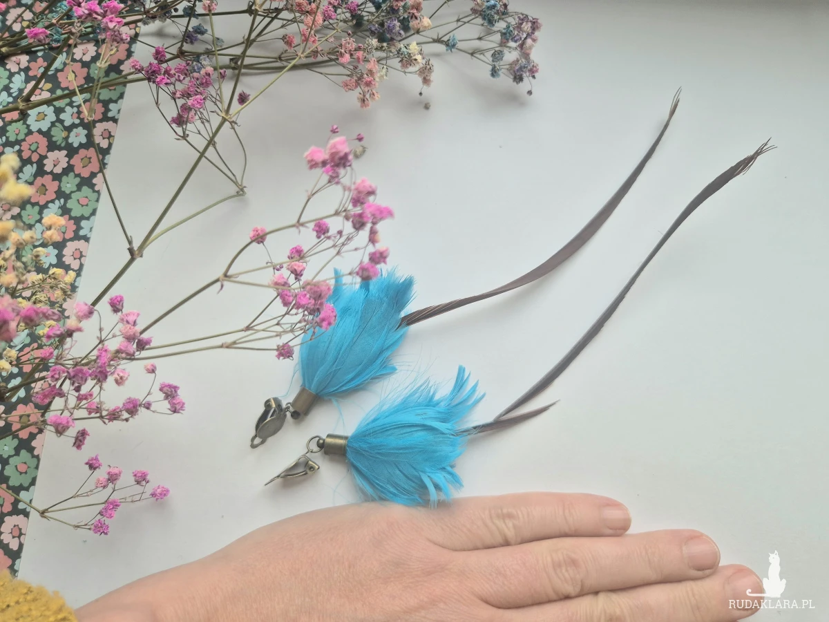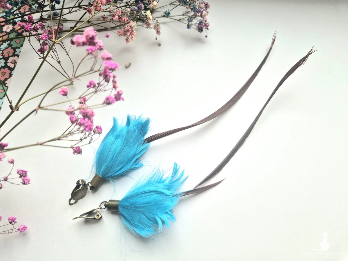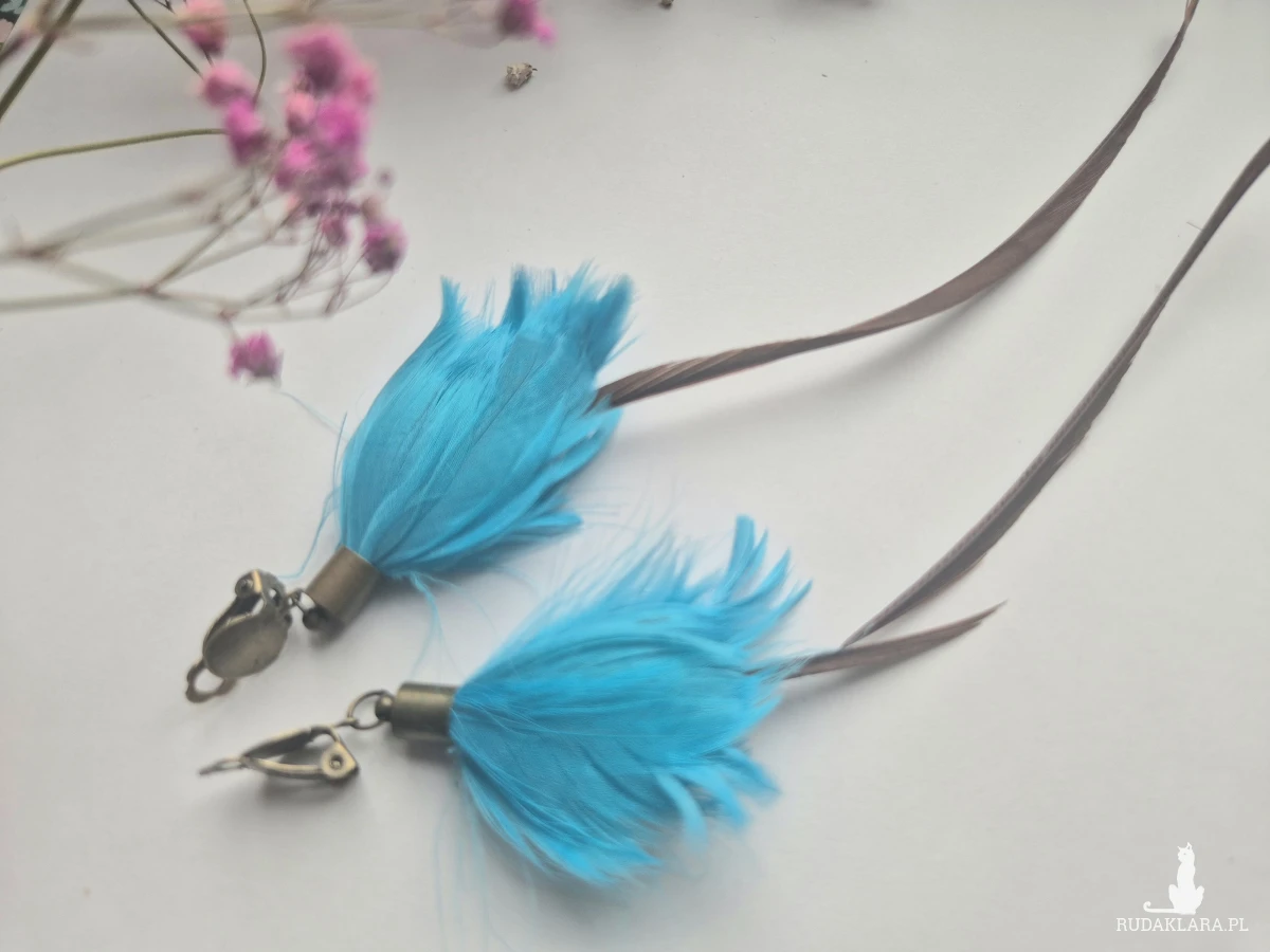 Klipsy  boho  folk   długie lekkie brązowo-niebieskie pióra polecam