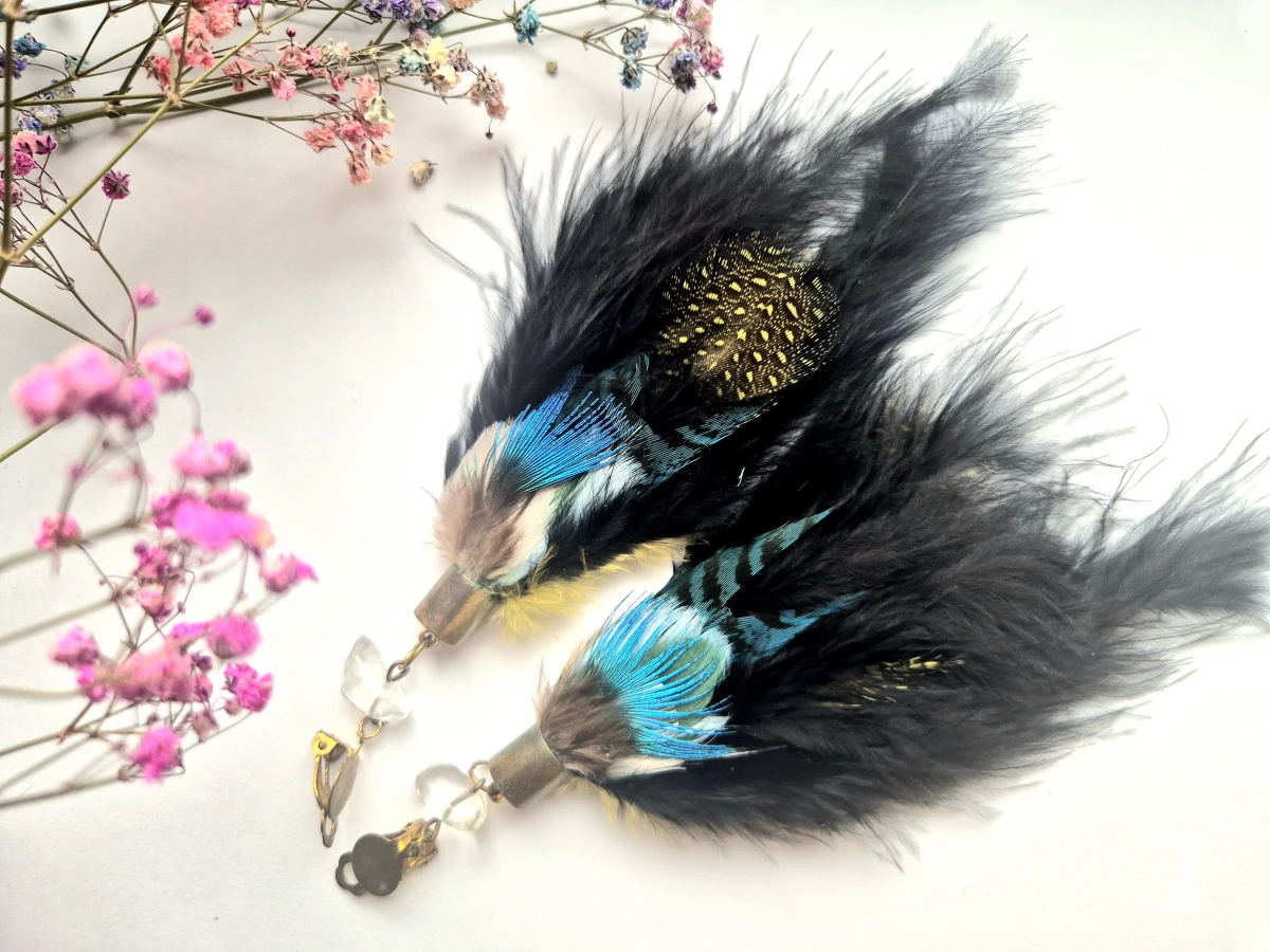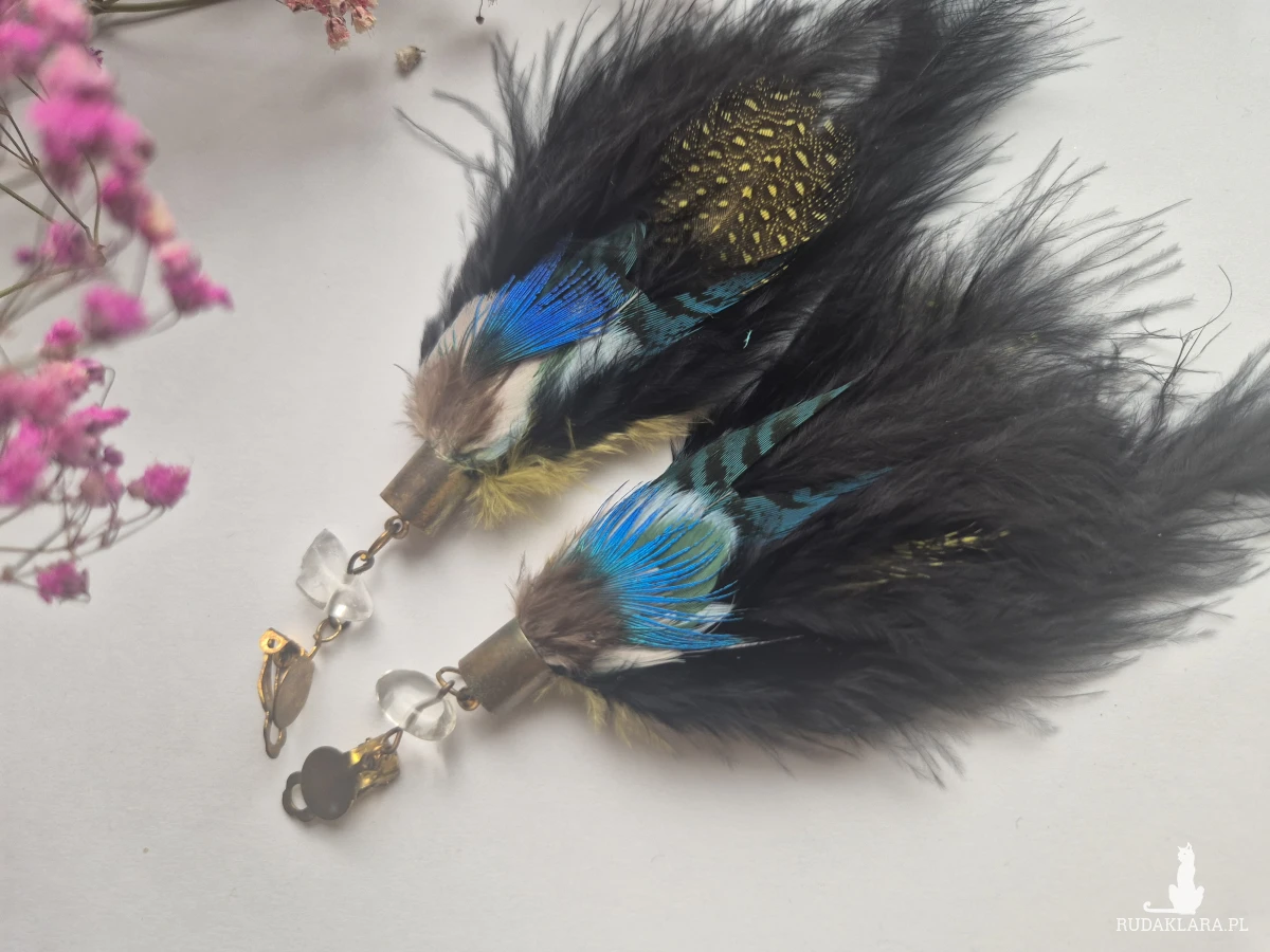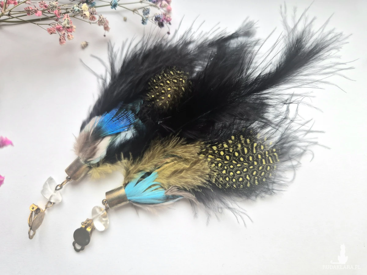 Klipsy  boho  folk   długie lekki energetyczne bujne pióra polecam