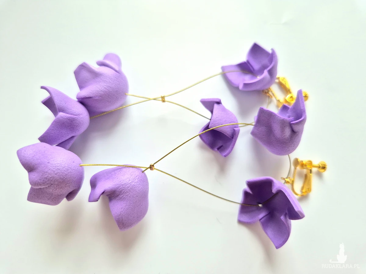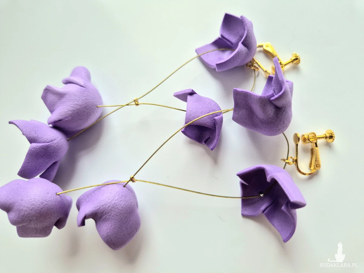 Klipsy  boho  folk   długie lekki energetyczne liliowe kwiaty niesamowicie zwracają uwagę polecam