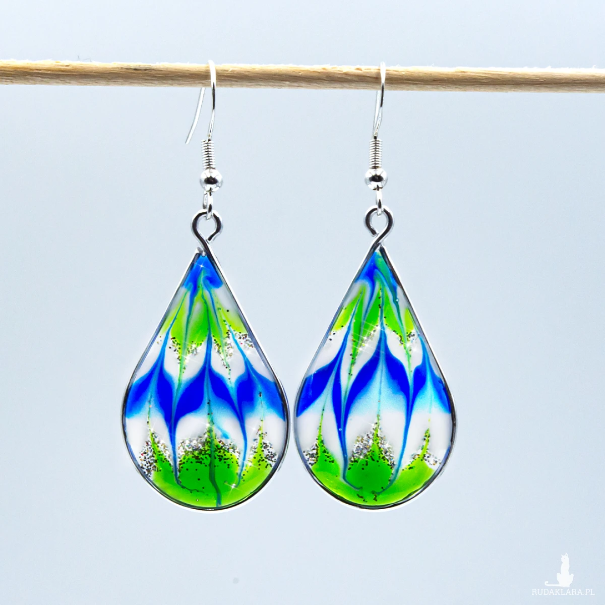 Unikalne kolczyki w stylu glamour z żywicy, zaprojektowane i ręcznie