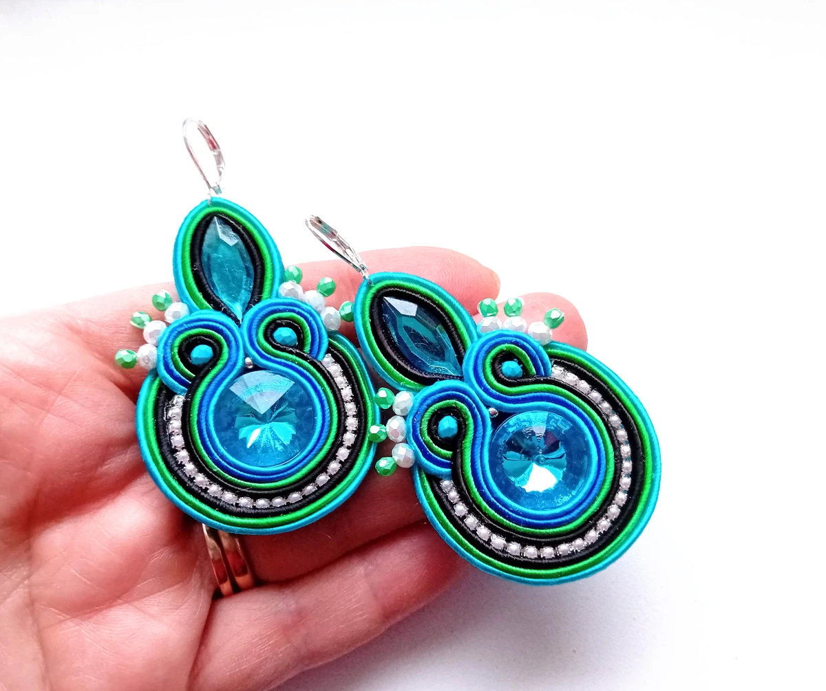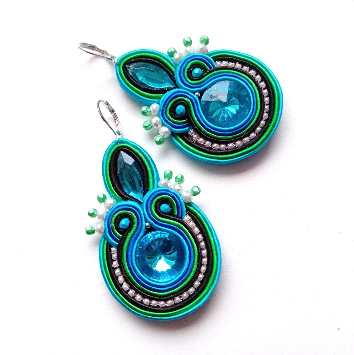 Materiał: kryształowy kaboszon, japońskie koraliki Toho, sutasz,taśma perełkowa, koraliki Fire Polish.