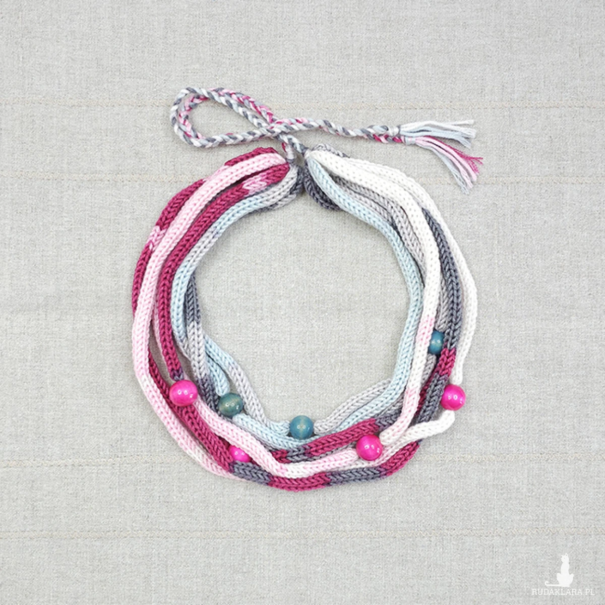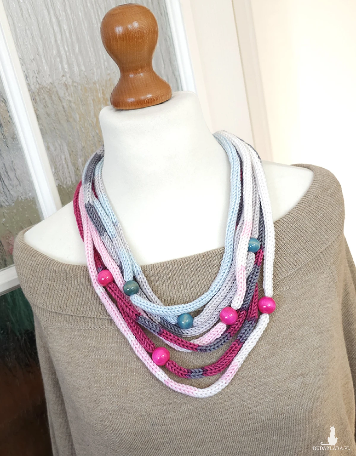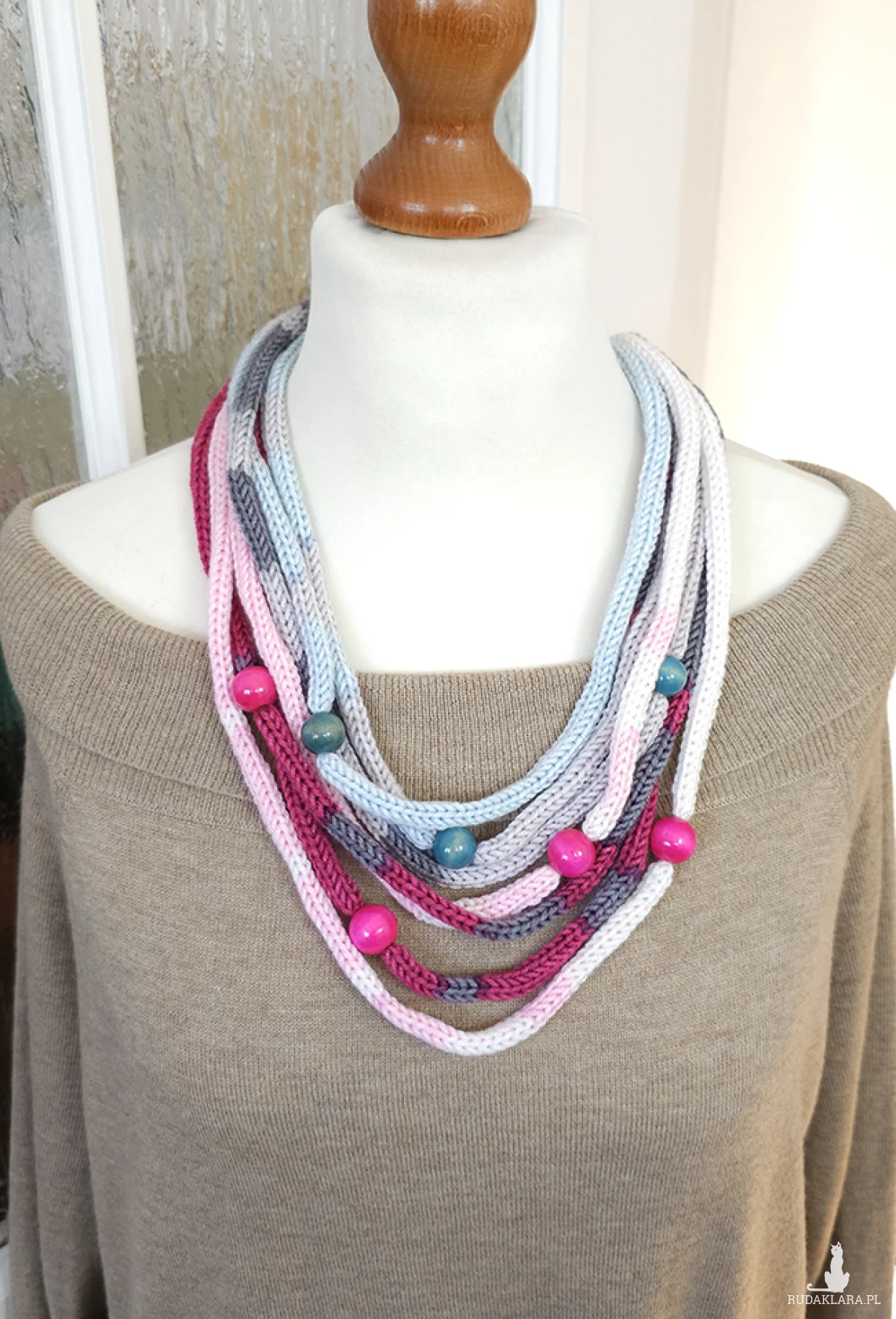 5936 włóczkowy, miękki, kolorowy naszyjnik