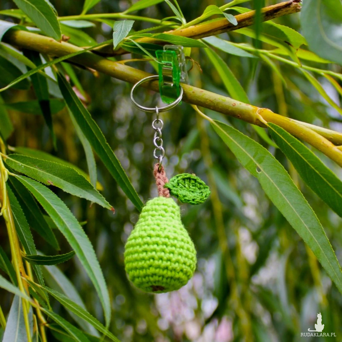 Ten brelok na szydełku w kształcie zielonej gruszki to idealny wybór!