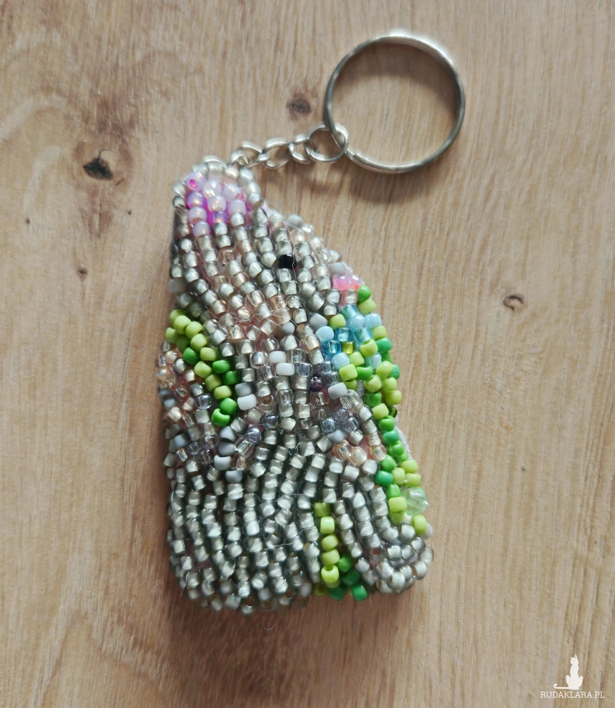 Brelok z haftu koralikowego myszka myszka krolik w trawie na Wielkanoc