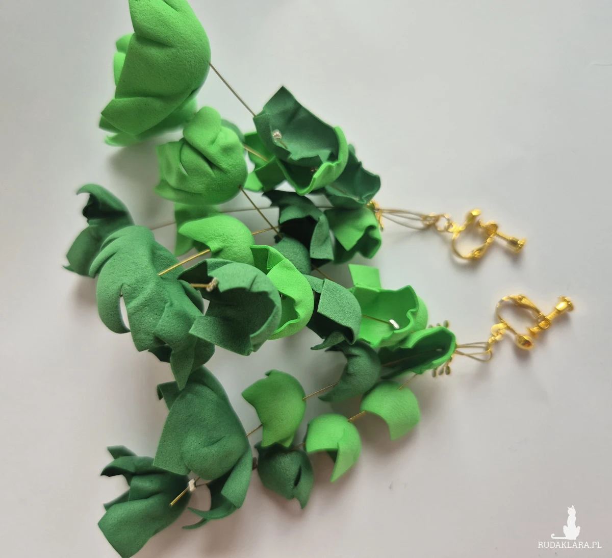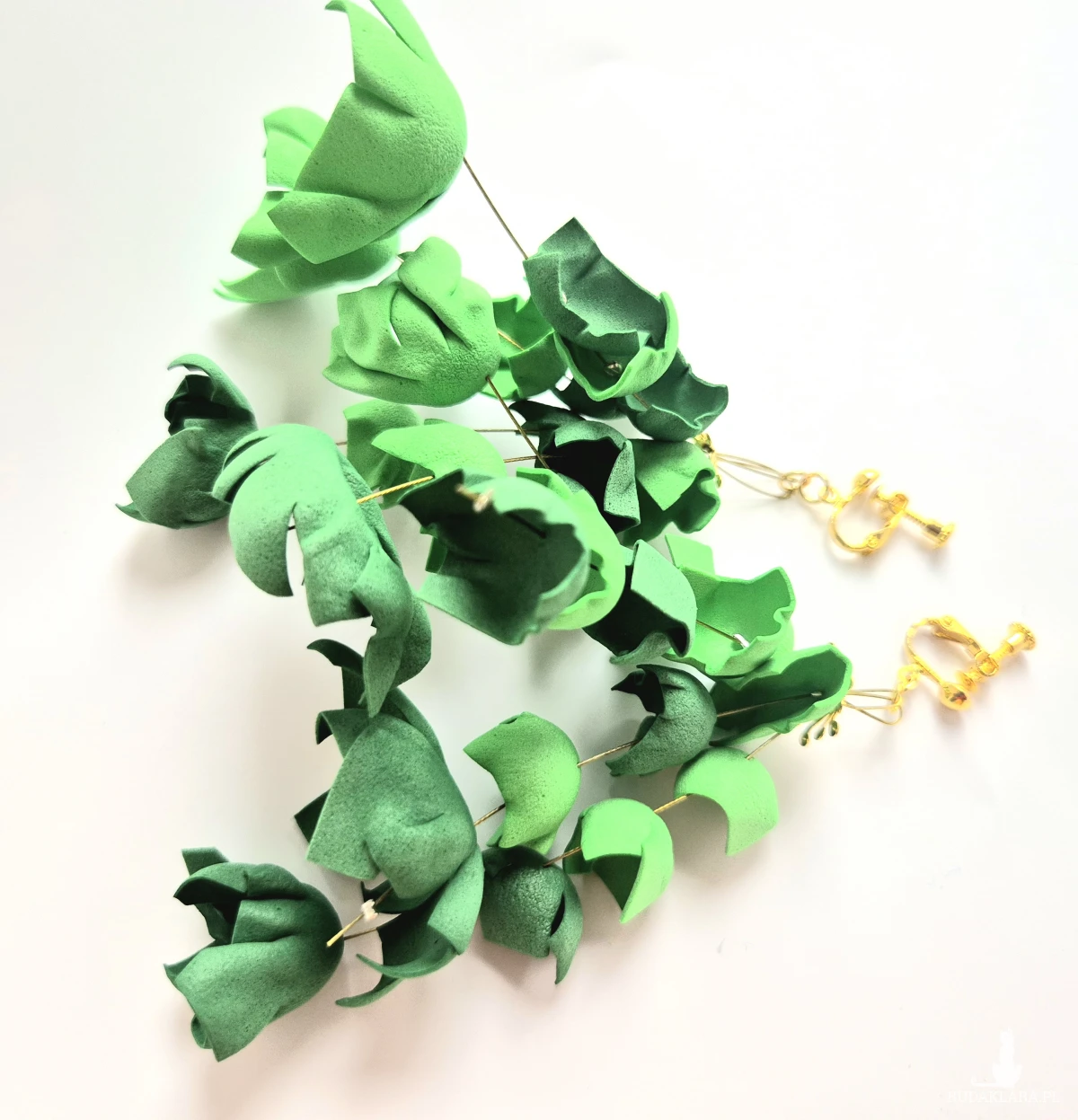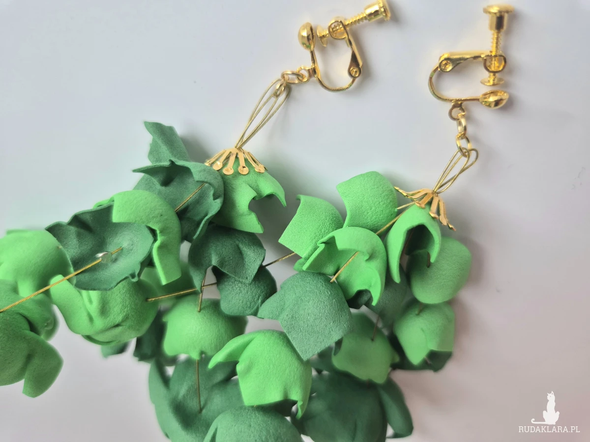 klipsy zielone kwiaty leciutkie
