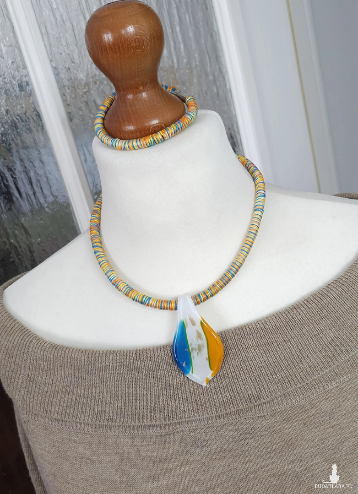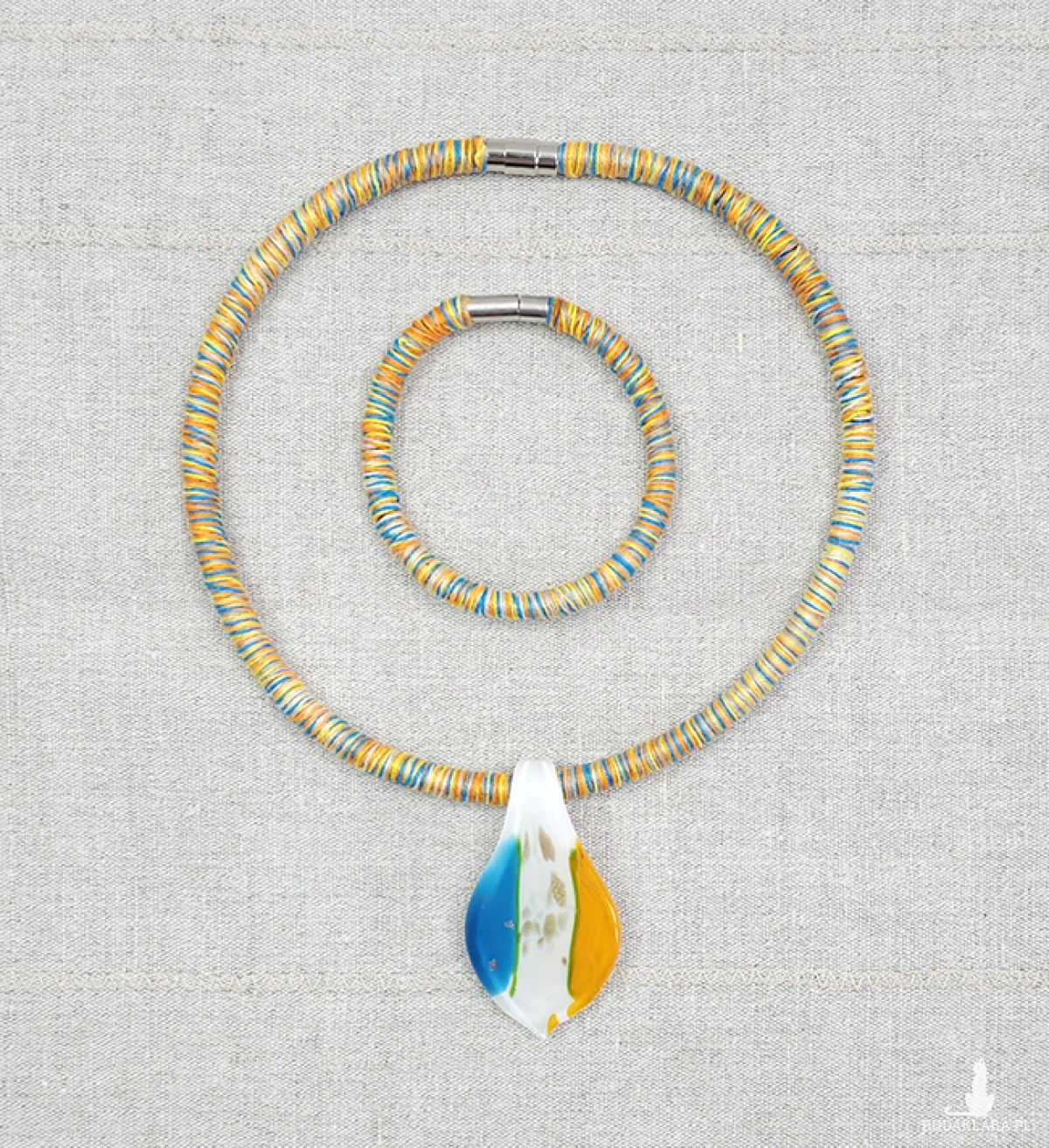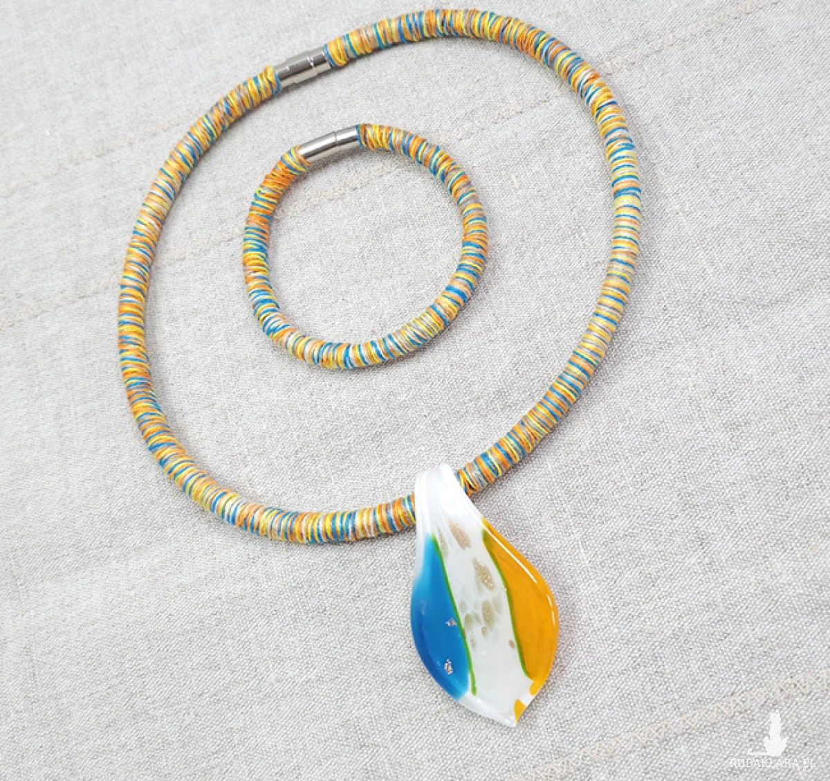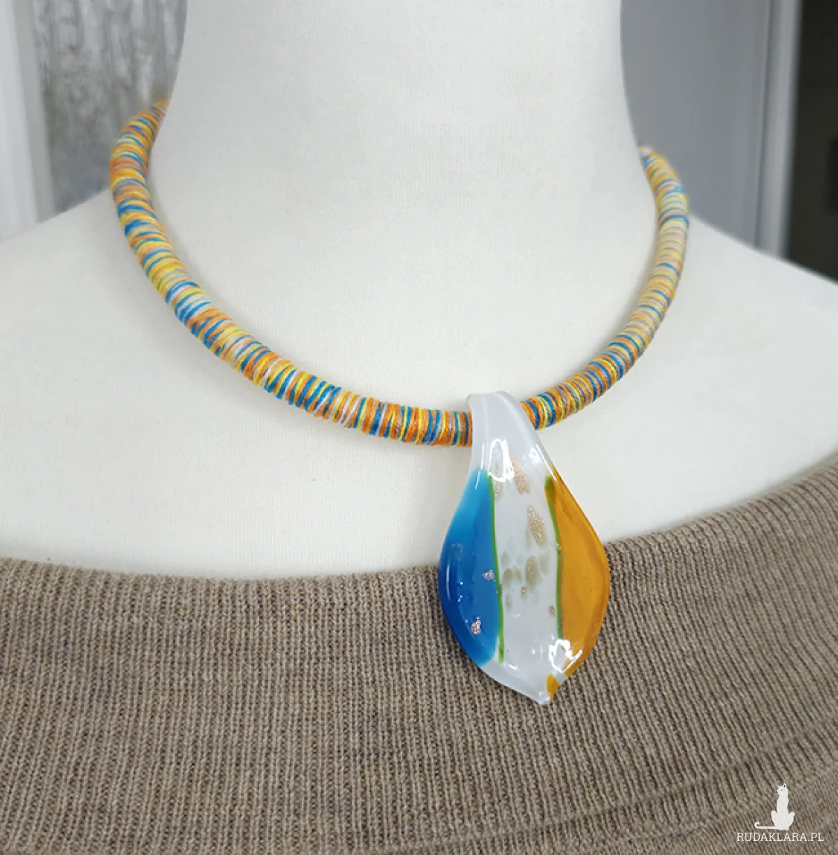 Materiały: bawełna, szkło weneckie, bazy kauczukowe.