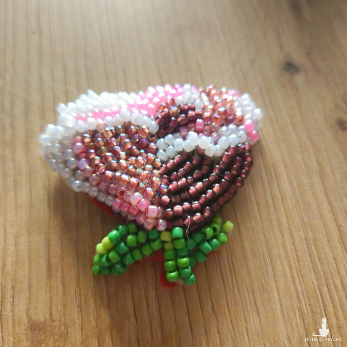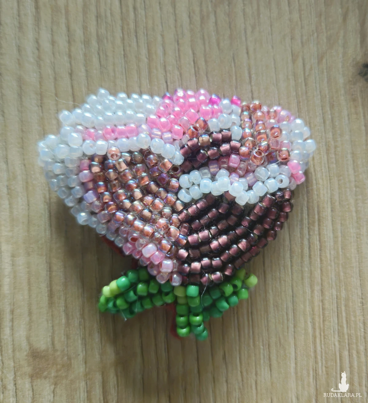 Broszka wykonana z haftu koralikowego to subtelna ozdoba, która przyciąga wzrok swoją misterną precyzją. Każdy detal został starannie wyhaftowany drobnymi koralikami, które wspaniale odbijają światło, tworząc efekt subtelnego blasku. Koraliki dobrane są w harmonijnych odcieniach, co nadaje broszce elegancji i wyjątkowego charakteru. Haft koralikowy w tym przypadku pełni rolę artystycznego wyrazu, łącząc tradycyjną technikę z nowoczesnym designem. Wzór może być inspirowany florystycznymi motywami, geometrycznymi kształtami lub abstrakcyjnymi kompozycjami, zależnie od indywidualnych upodobań. Broszka jest doskonałym dopełnieniem zarówno codziennych, jak i wieczorowych stylizacji, wnosząc do nich odrobinę wyrafinowanego uroku.