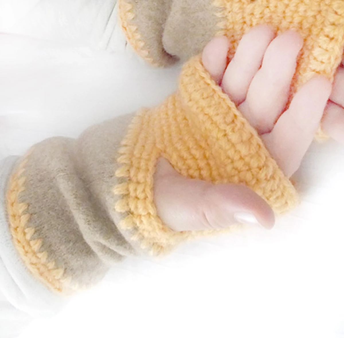 Fajne mitenki w kolorze beżowym, wełniane. Prać ręcznie w letniej wodzie. Ciepły i oryginalny dodatek na jesień, zimę. Kolory: brązowy (beżowy) i jasnopomarańczowy.