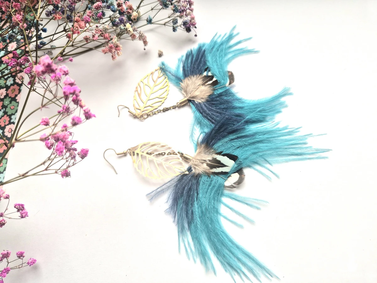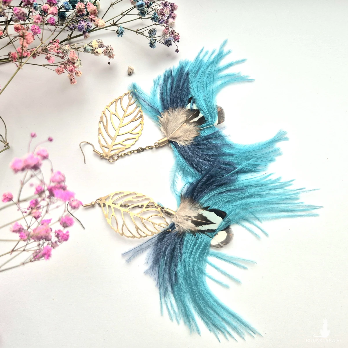 Klipsy  boho  folk   długie lekki energetyczne niebieskie pióra niesamowicie zwracają uwagę polecam