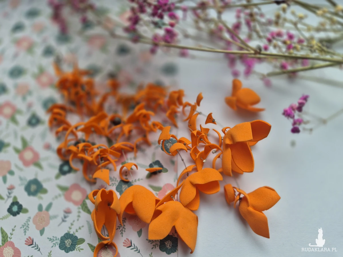 Kolczyki kwiaty leciutkie pomarancz