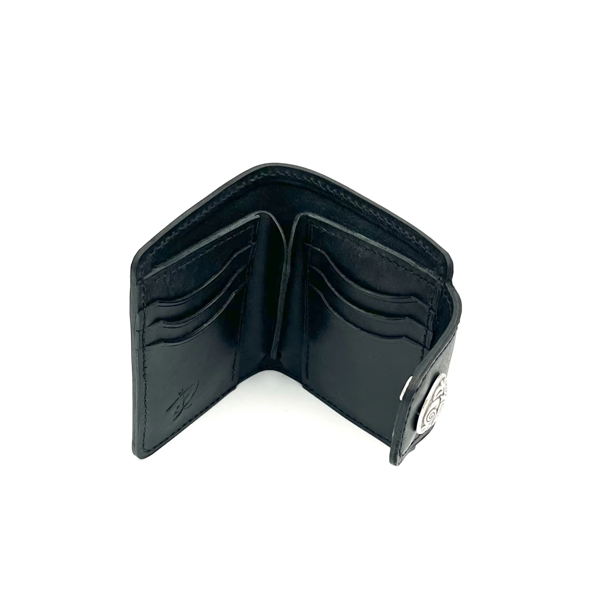 Dla odważnych podróżników i poszukiwaczy przygód piękny czarny portfel z ozdobnym Concho Smok Celtycki.