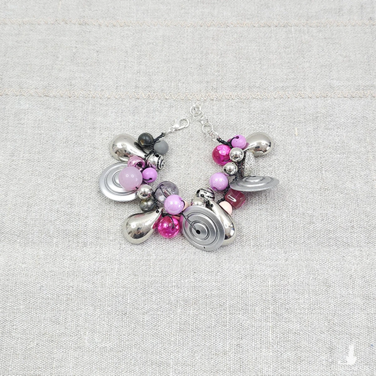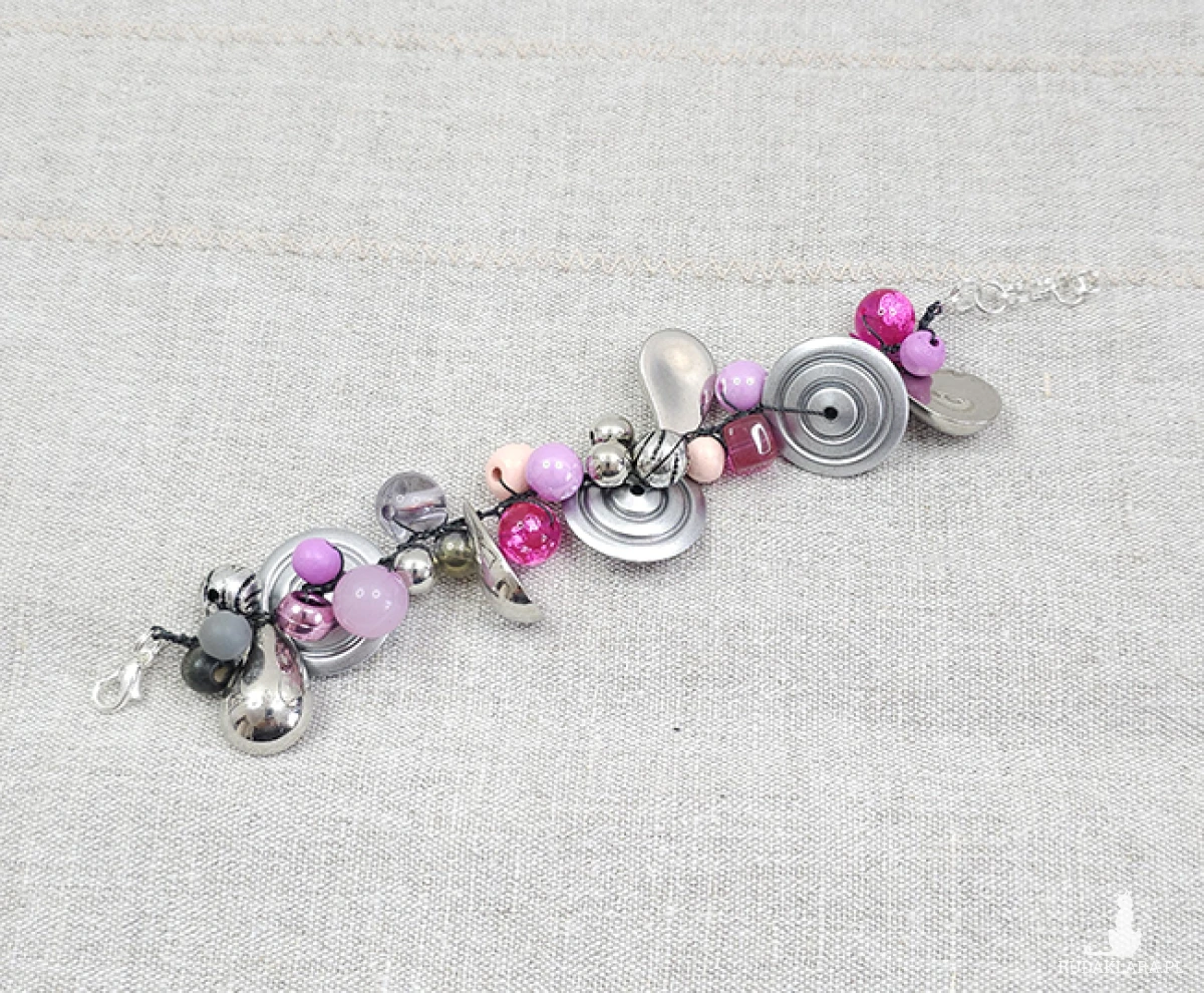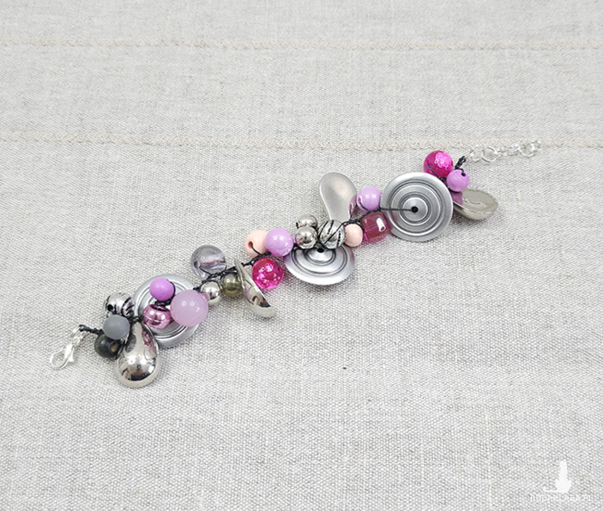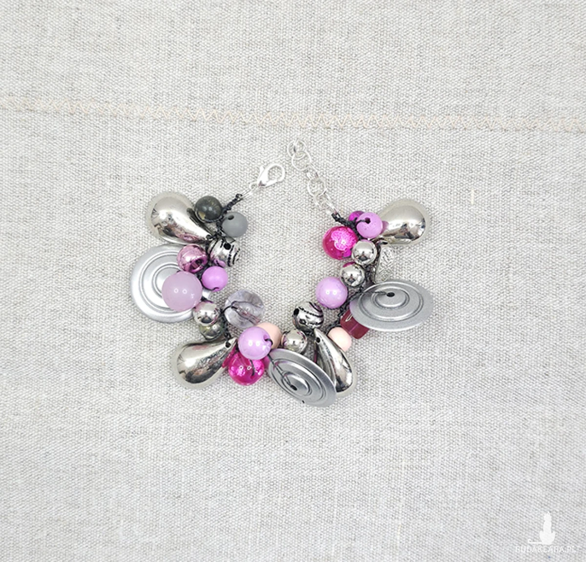 6382 szara, srebrna, różowa bransoletka