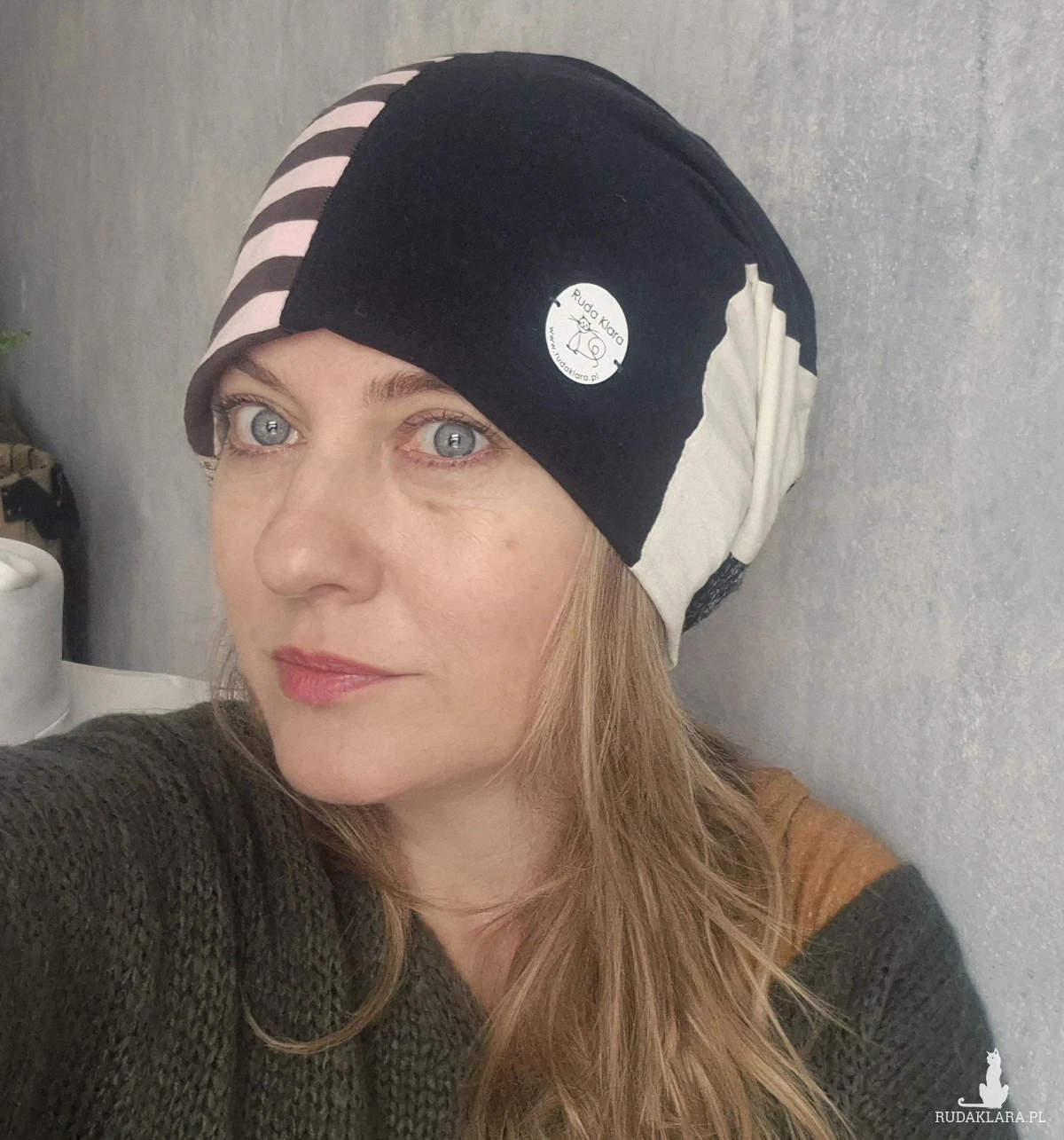 czapka  patchworkowa Smerfetka uniwersalna na podszewce, polecam box e1