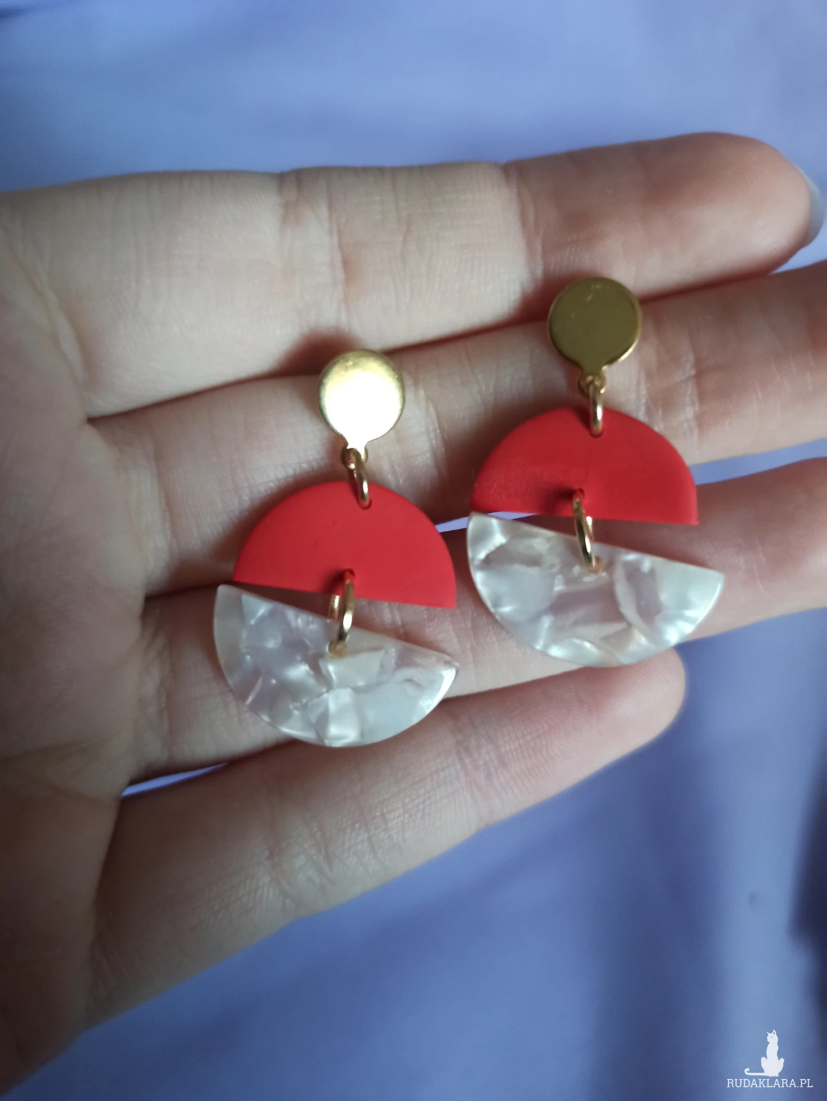 Kolczyki wykonane są z gliny polimerowej, która jest bardzo lekka. Sprawia to, że nie czuje się ich na uchu.