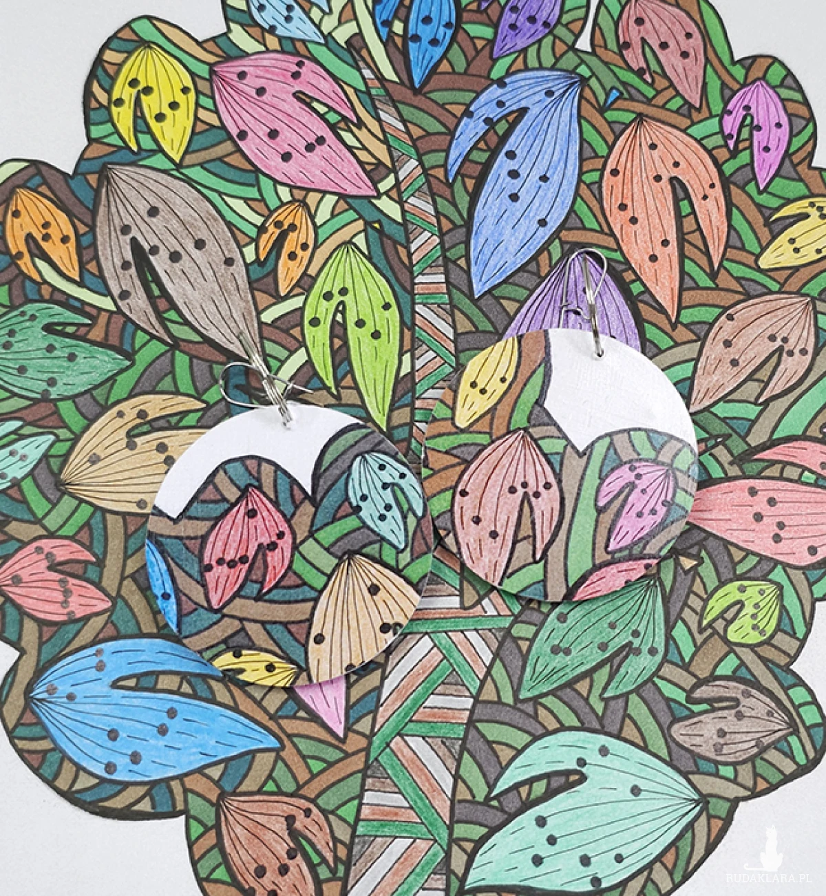 Kolczyki wykonane z drewnianej bazy oraz części mojego autorskiego rysunku "Drzewo".