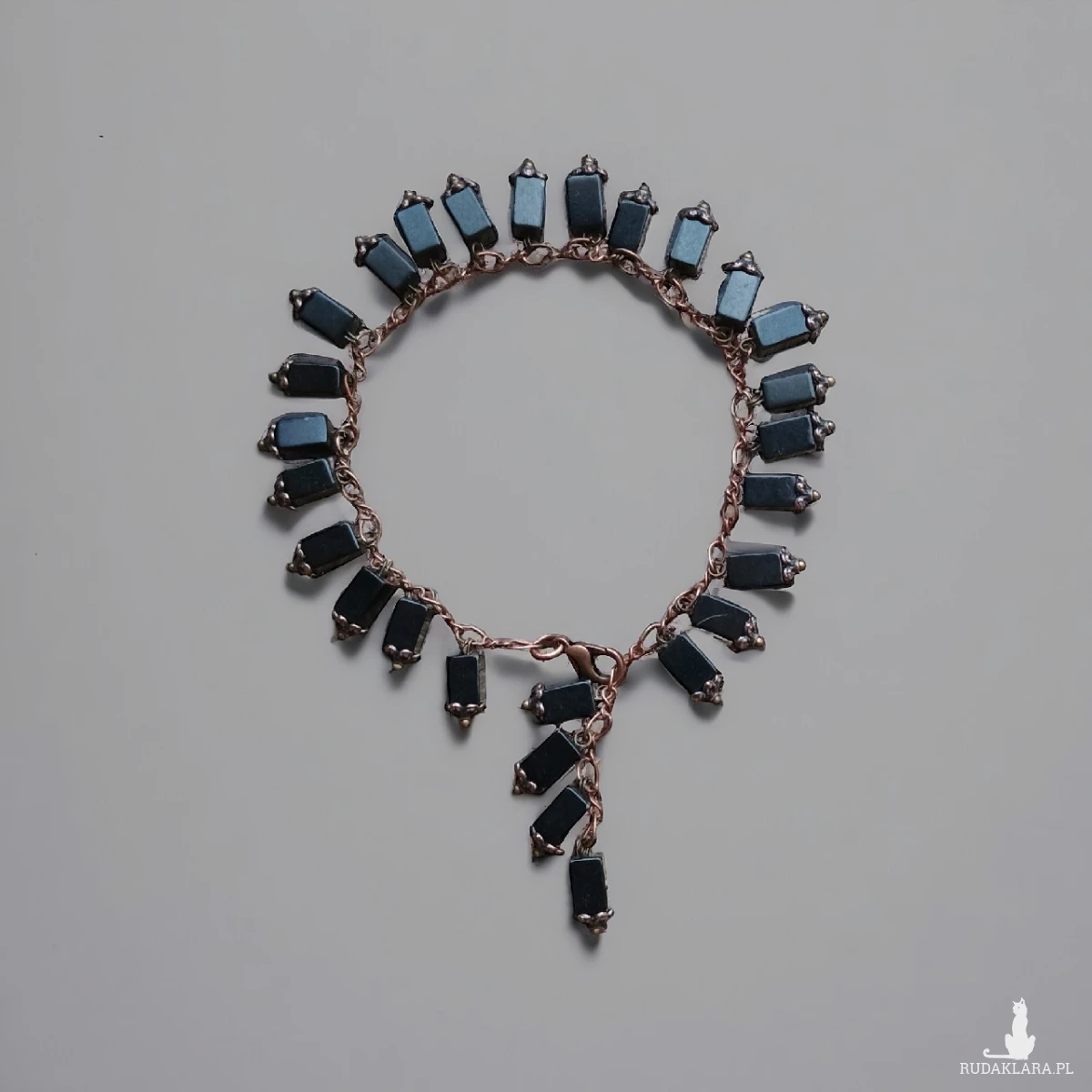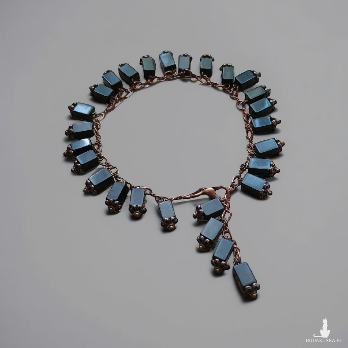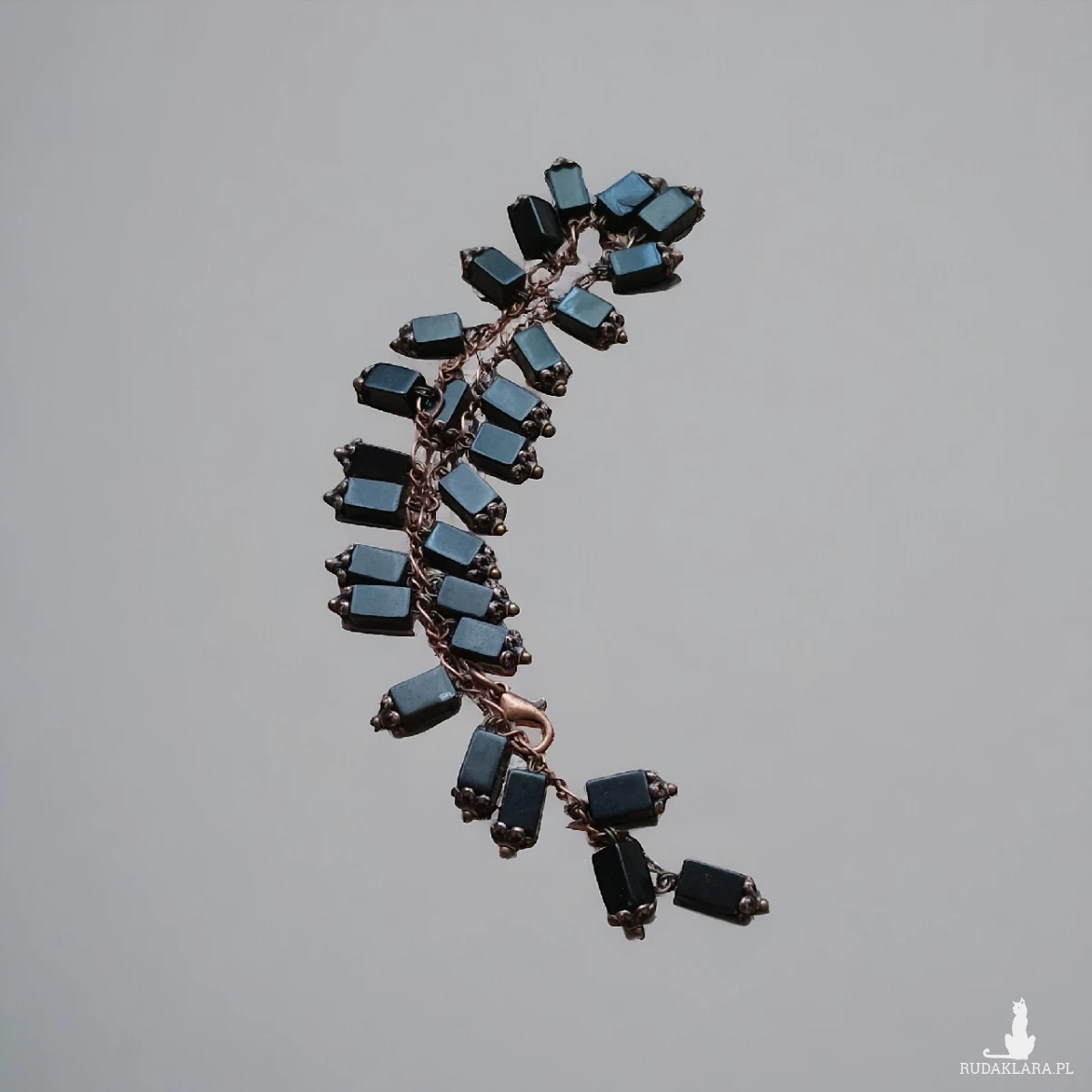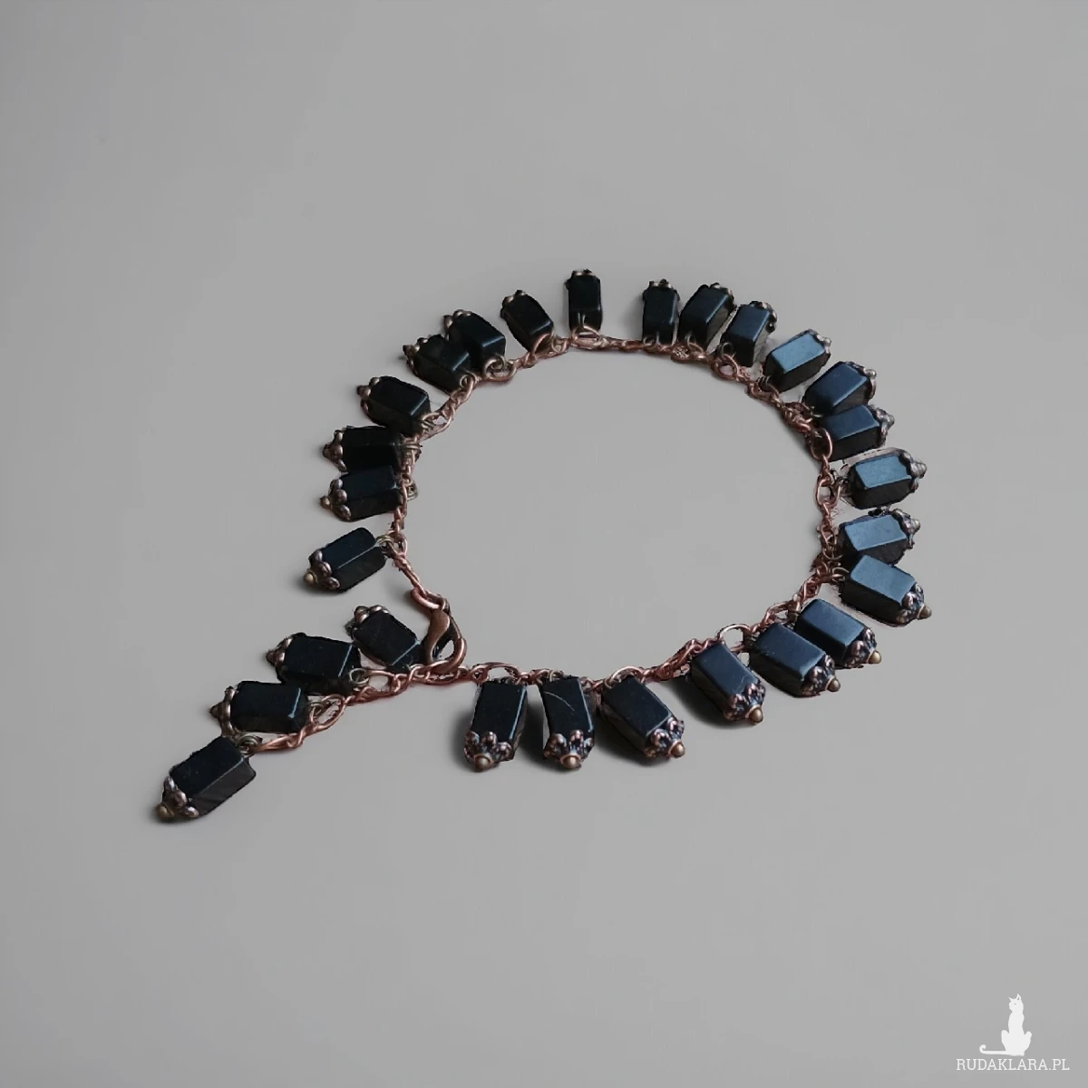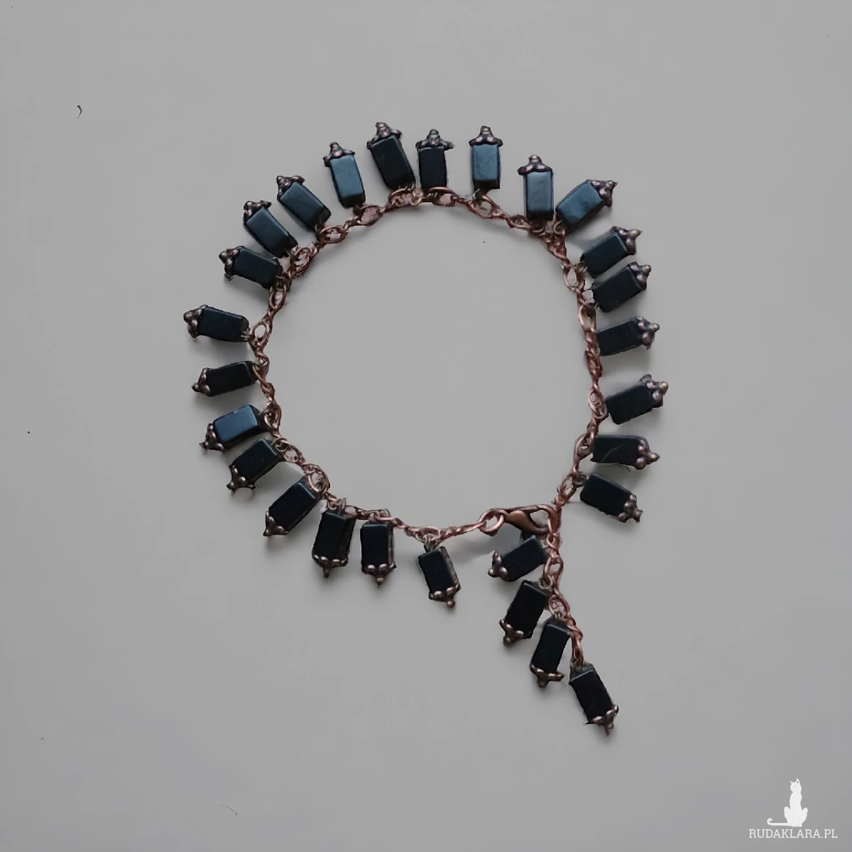 Oryginalna bransoletka z czarnego Onyksu i miedzi wykonana na eleganckim miedzianym łańcuszku.