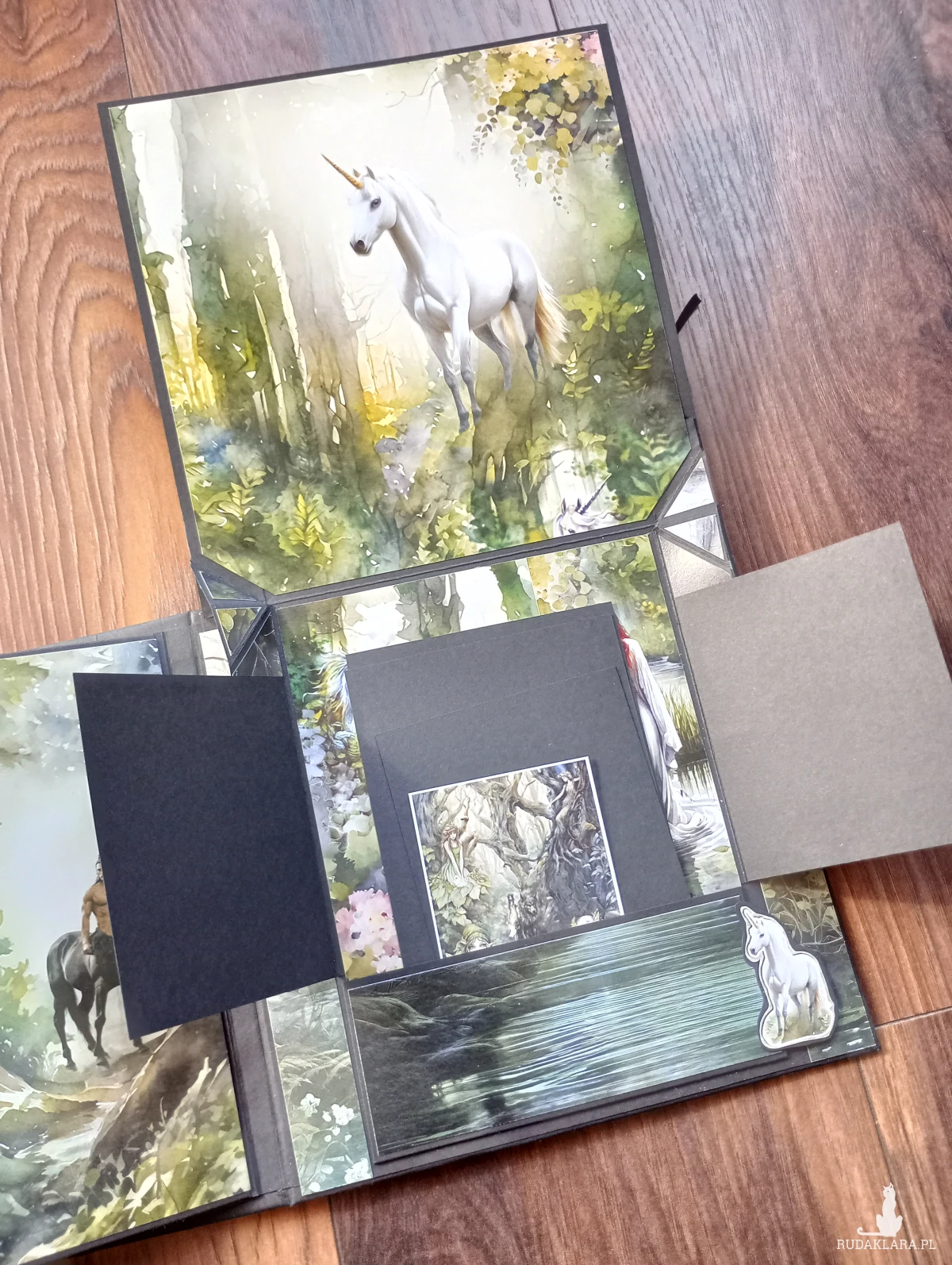 Album wykonany metodą scrapbookingu, o charakterze pop up (podnoszące się elementy).