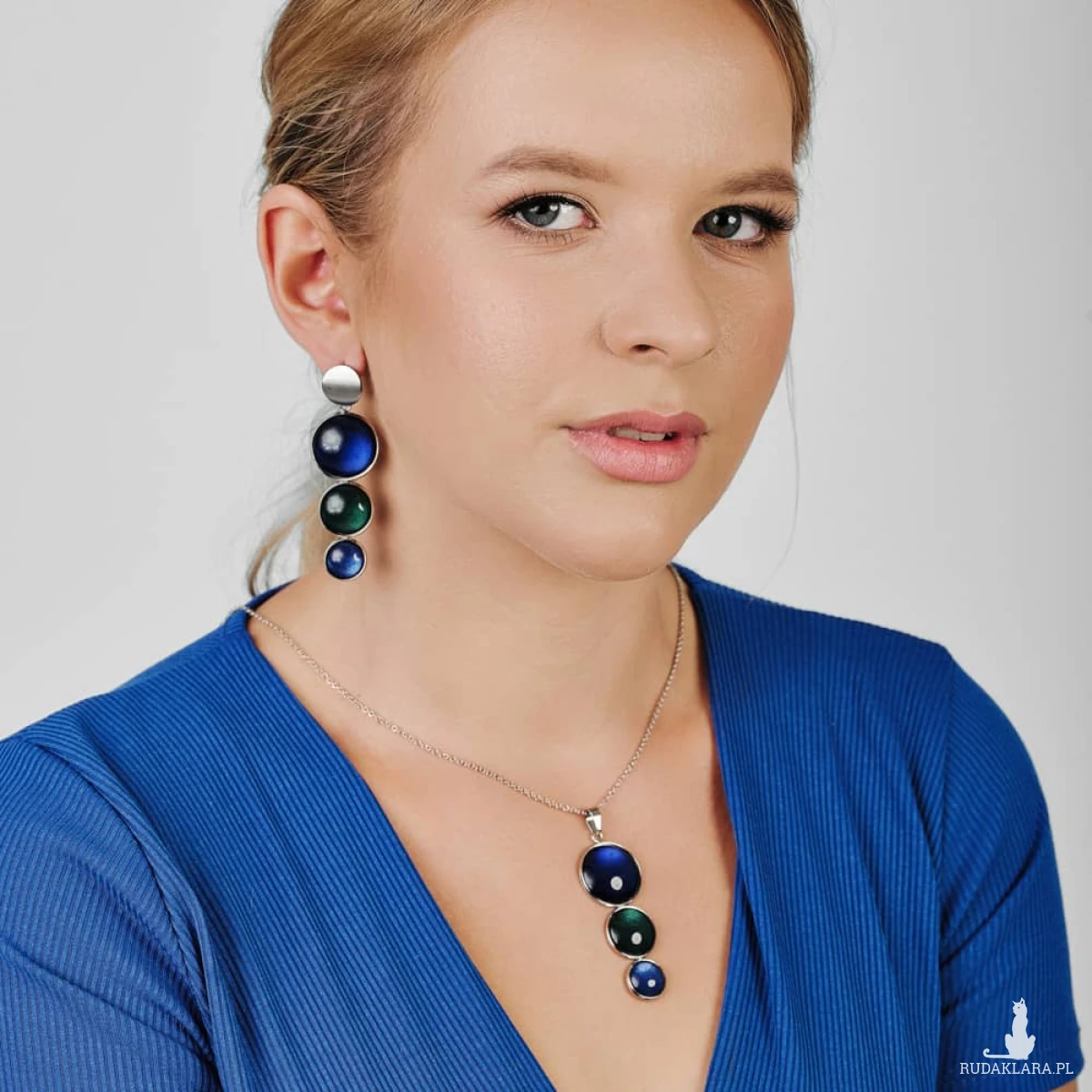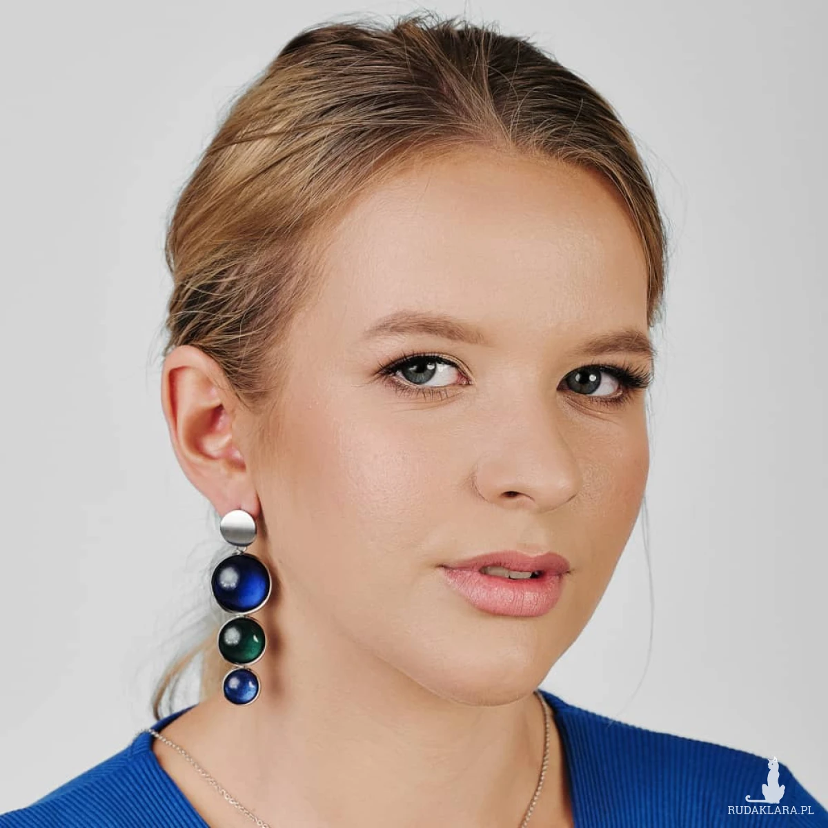 Te pełne blasku kolczyki są częścią kolekcji “W blasku perłowego księżyca”. Kolczyki wykonane są z ręcznie malowanych kaboszonów umieszczonych w bazach ze stali szlachetnej. Szklane elementy zachwycają subtelnym, opalizującym blaskiem, który jest niczym odbicie księżyca na tafli wody. Kolczyki mienią się w świetle, przyciągając wzrok i dodają elegancji każdej stylizacji. Ten dodatek jest idealny dla osób ceniących sobie wyrafinowaną i ponadczasową biżuterię. Do kompletu możesz również dobrać bransoletkę e23/m28. Materiał: stal szlachetna, malowane ręcznie szkło Wykończenie: połysk Długość kolczyków: 7 cm Średnica kaboszonu: 20; 16; 12 mm Waga pary kolczyków: ok 17,2 g SKU: e6/m28 Jak dobierać komplety? Kolory na zdjęciach mogą się różnić ze względów technicznych. Aby dobrać identyczny odcień, zwróć uwagę na numer SKU produktu. Pierwsza część to numer modelu, a numery po “/” to kolor, np. /17 oznacza morski perłowy. Produkty z tym samym SKU po "/" mają identyczny kolor. Dzięki temu możesz łatwo tworzyć komplety, mając pewność, że biżuteria jest w tym samym odcieniu. Stwórz własny komplet! Jeśli nie ma biżuterii w wybranym modelu lub kolorze którego szukasz, możesz ją zamówić indywidualnie. Wyślij do nas maila z nazwą, numerem modelu i kolorem, a my w miarę możliwości wykonamy biżuterię na zamówienie. Termin realizacji ustalamy indywidualnie. Biżuteria zostanie elegancko zapakowana. W przypadku zakupu kompletu, biżuteria zostanie zapakowana razem. Kolory na zdjęciach mogą delikatnie różnić się od rzeczywistych.