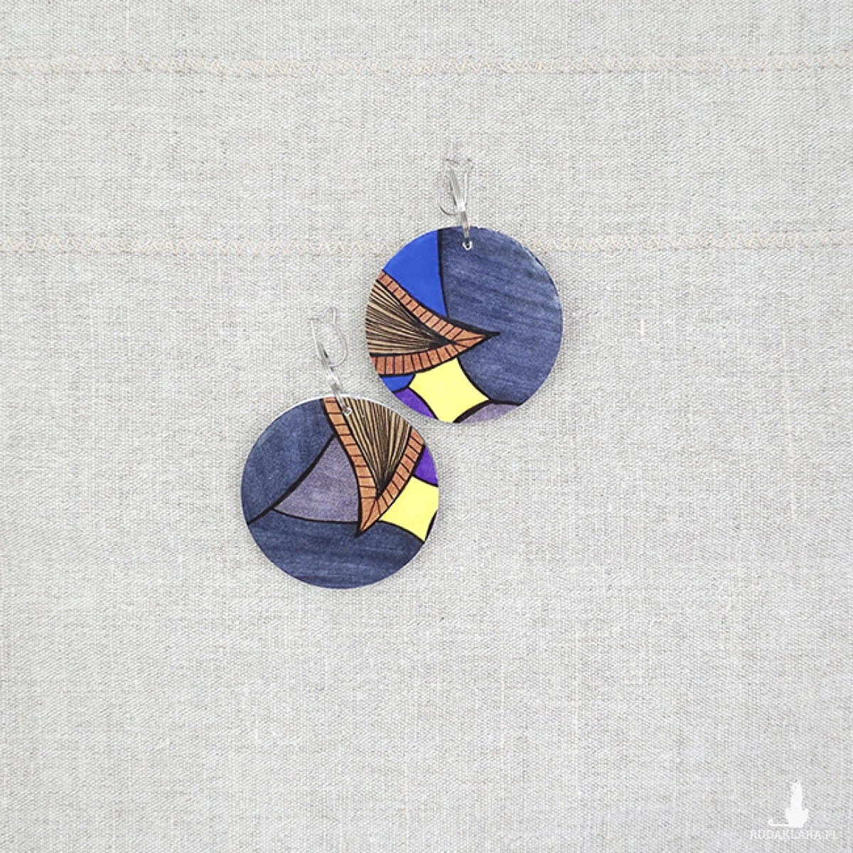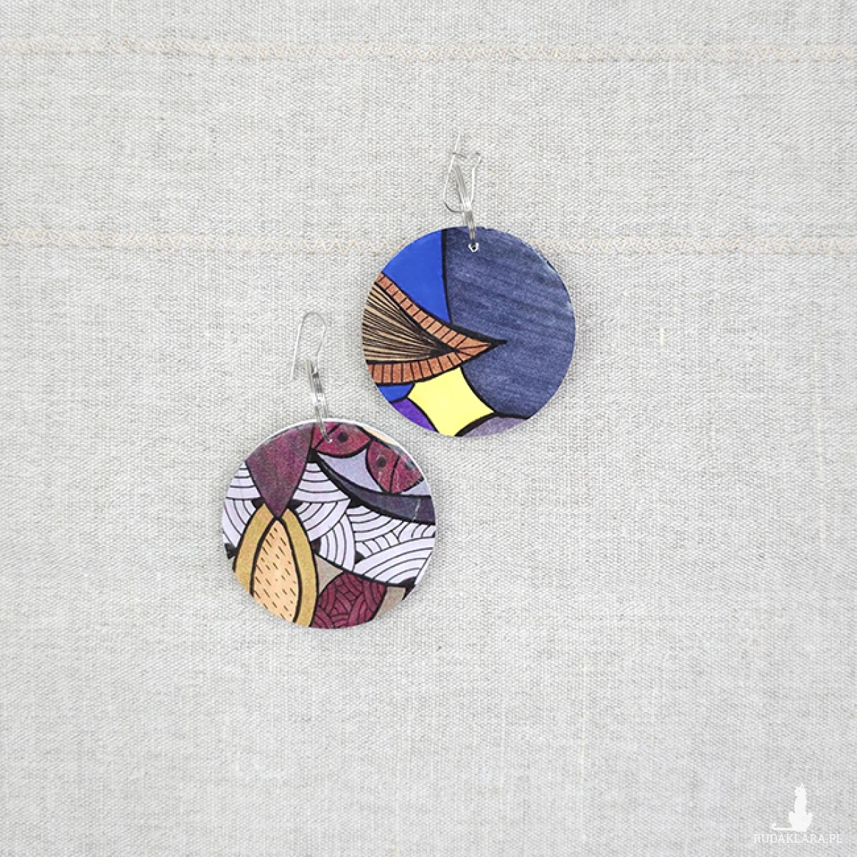 6514 kolorowe, niepowtarzalne, duże, dwustronne kolczyki; 4 w 1;