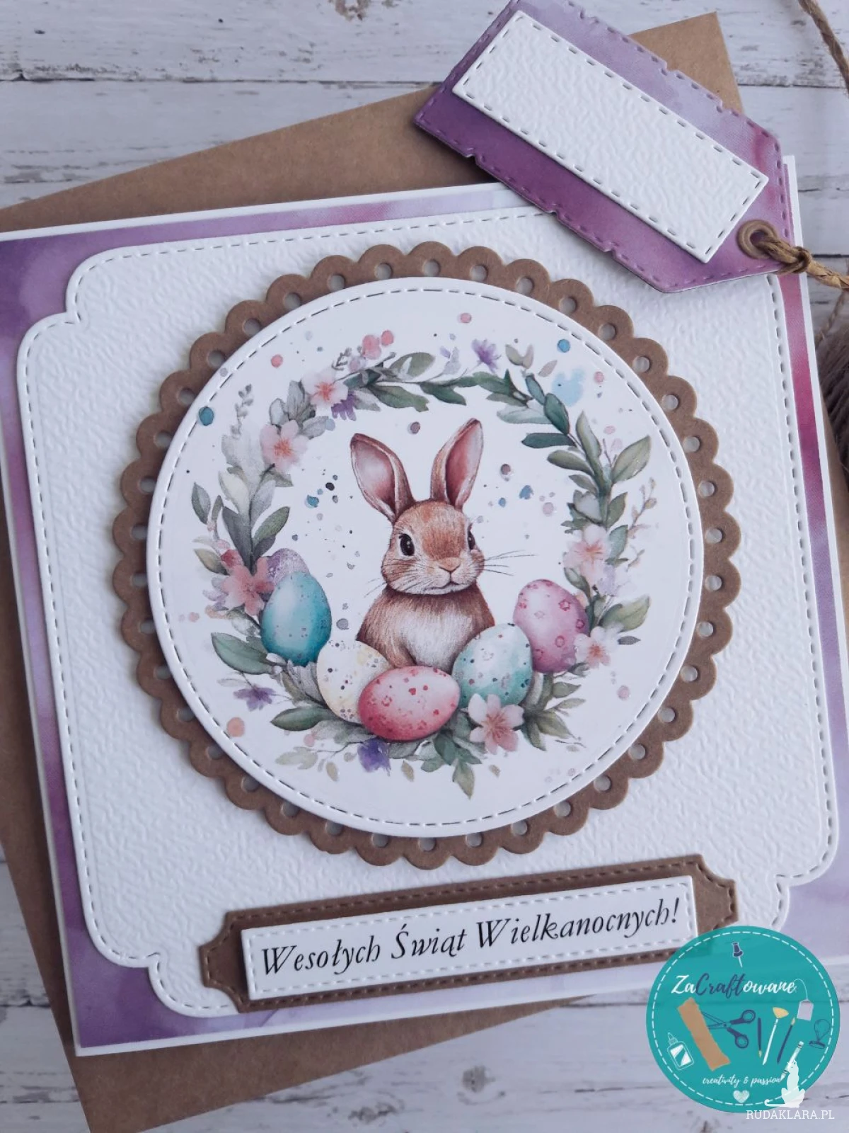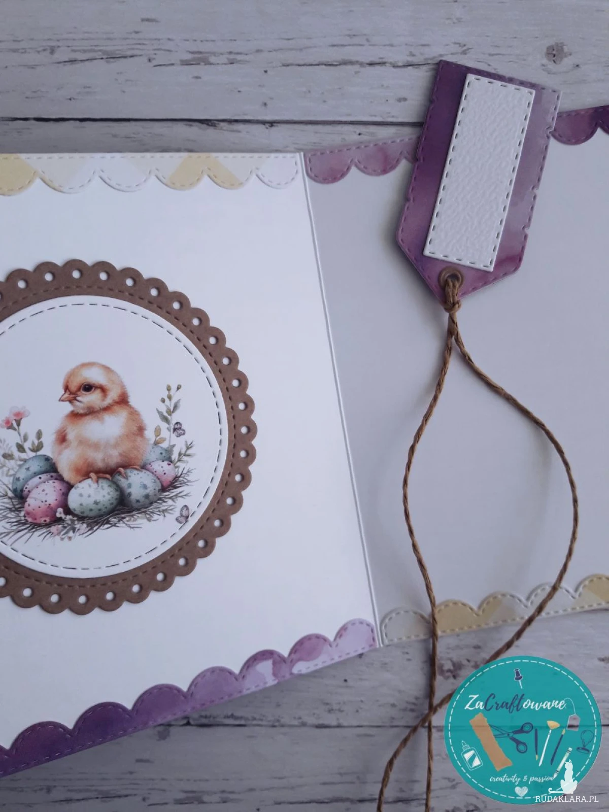 Do kartki dołączam również GRATIS w postaci widocznej na zdjęciu etykietki, na której można wypisać imię osoby obdarowywanej wielkanocnym prezentem i przyczepić ją np. do wstążki, którą obwiązany jest upominek, za pomocą sznureczka, który również znajduje się w zestawie.