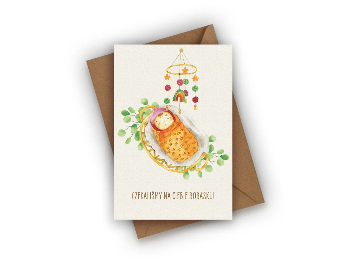 Kartka z okazji narodzin dziecka- Czekaliśmy na Ciebie bobasku!