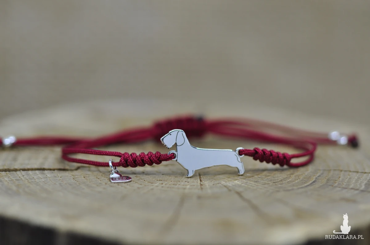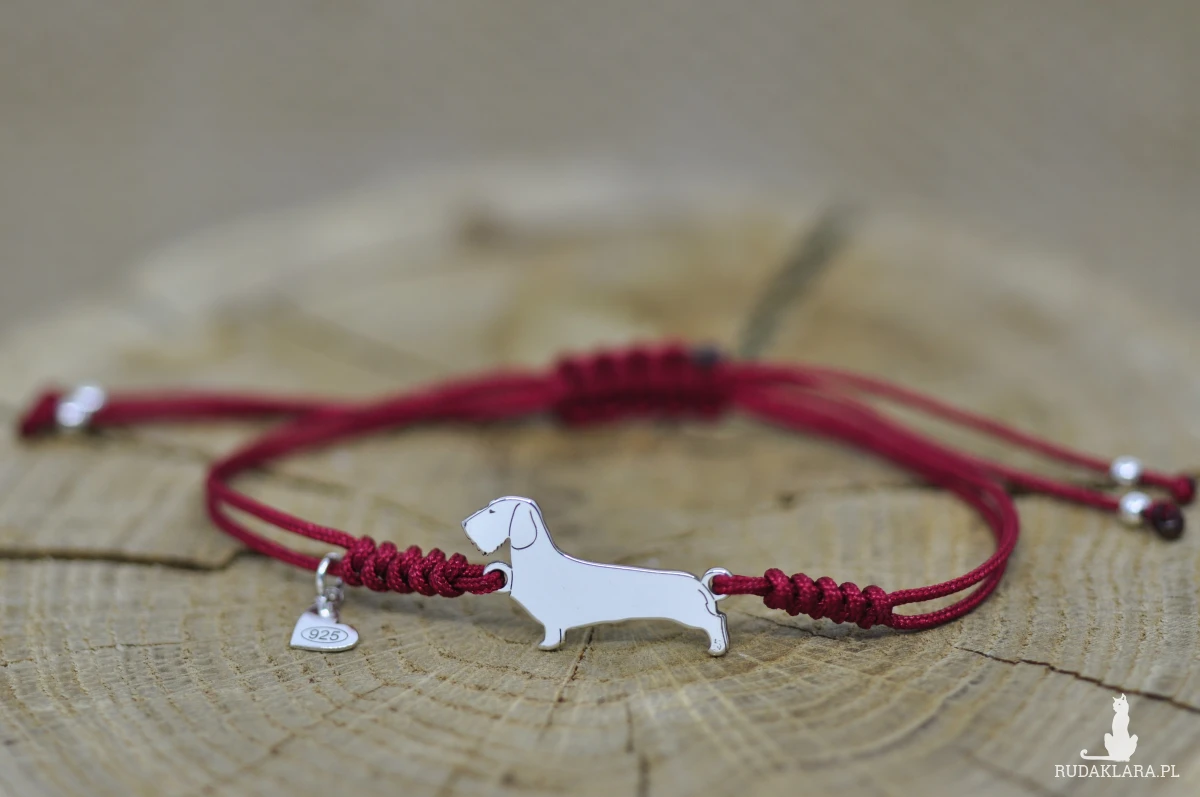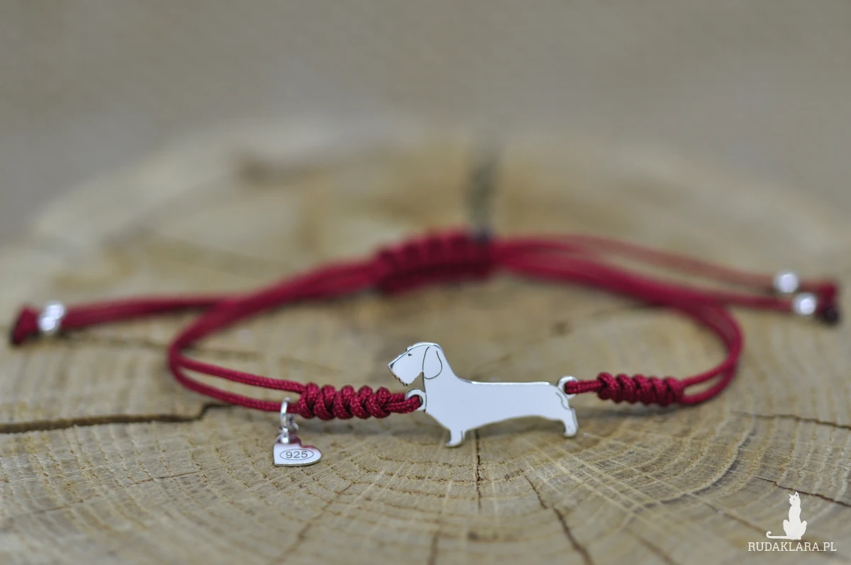 Jamnik wykonany ze srebrnej blachy próby 925, wymiary pieska: 20,3 x 11,7 mm, grubość 0,8 mm i srebrne kuleczki.