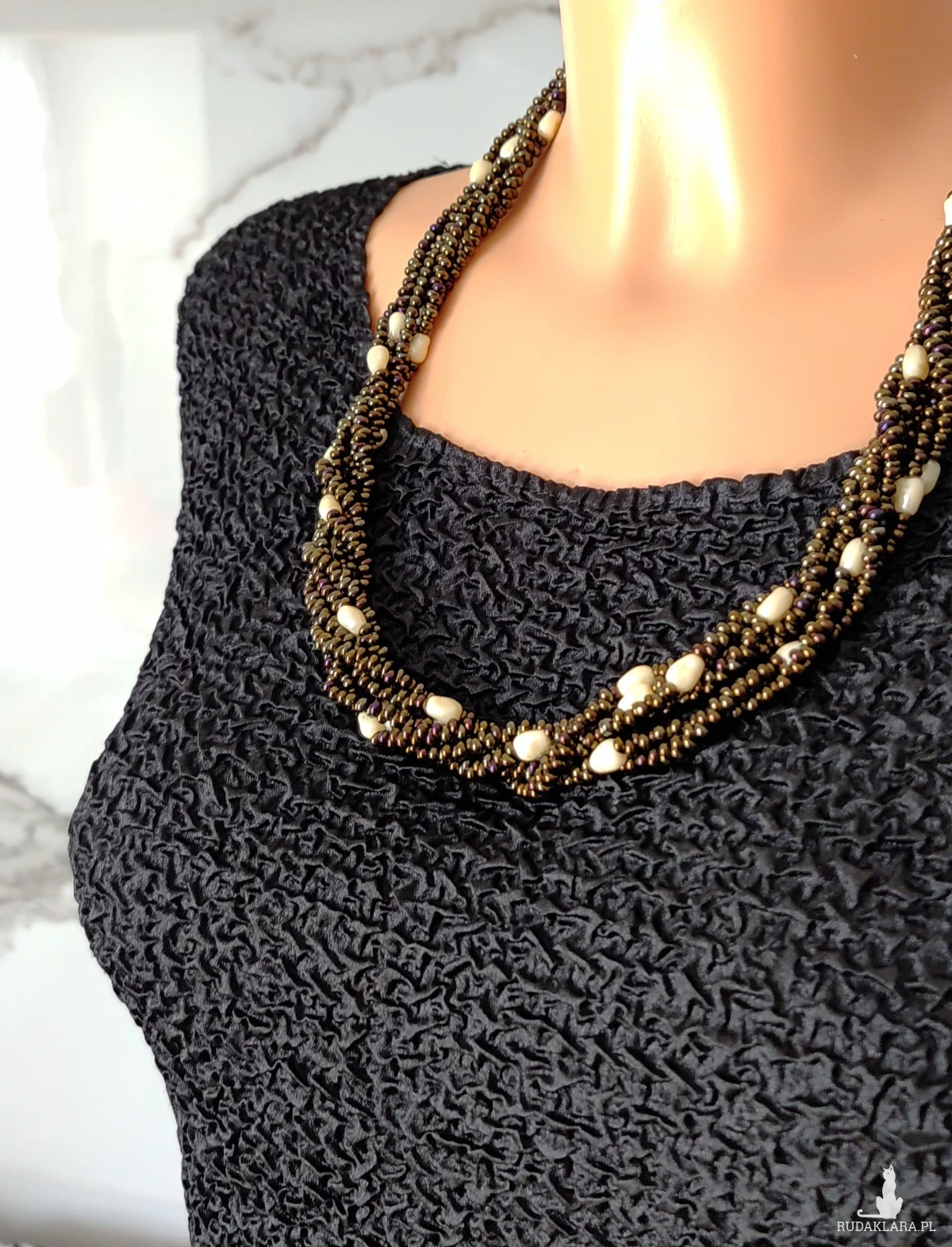 Naszyjnik z perelek szklanych gniecionych czeskiej firmy i
