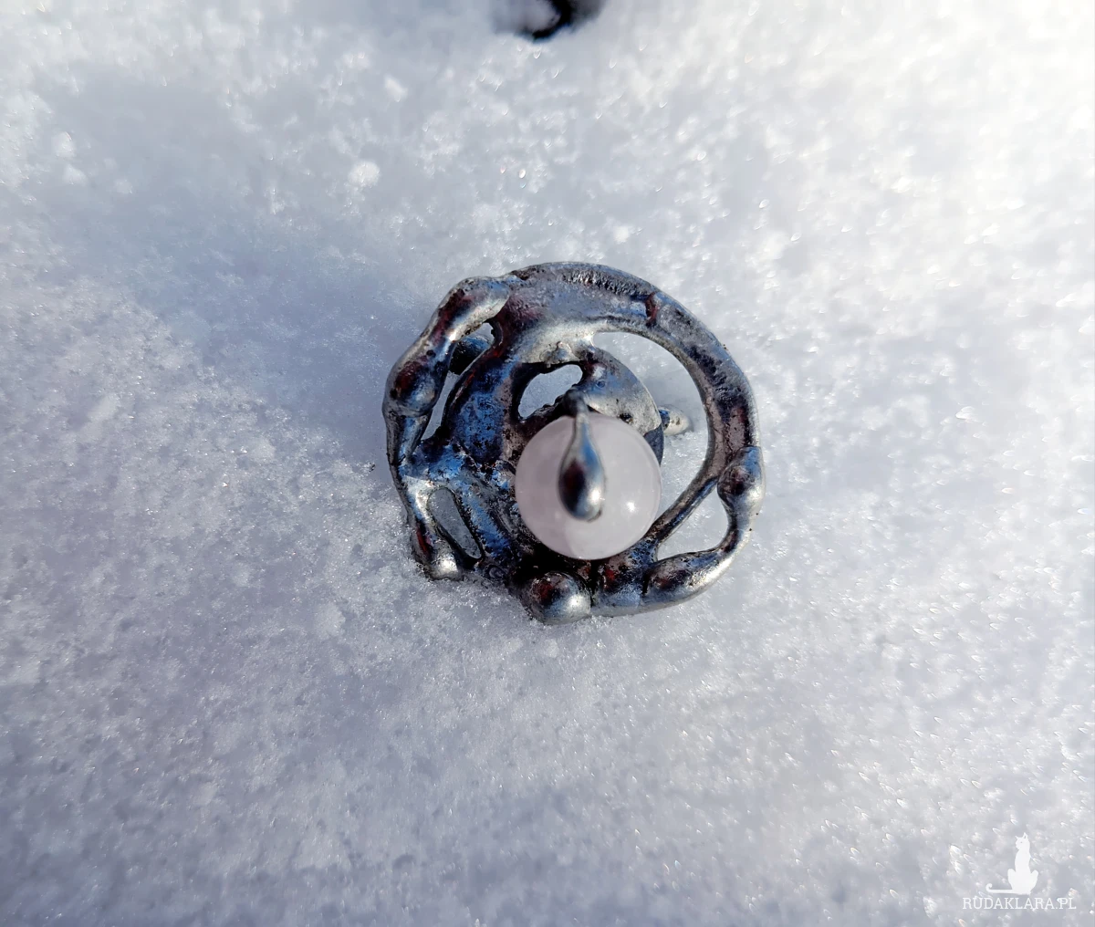 Pierścionek z kwarcem różowym, regulowany, oprawa cynowa