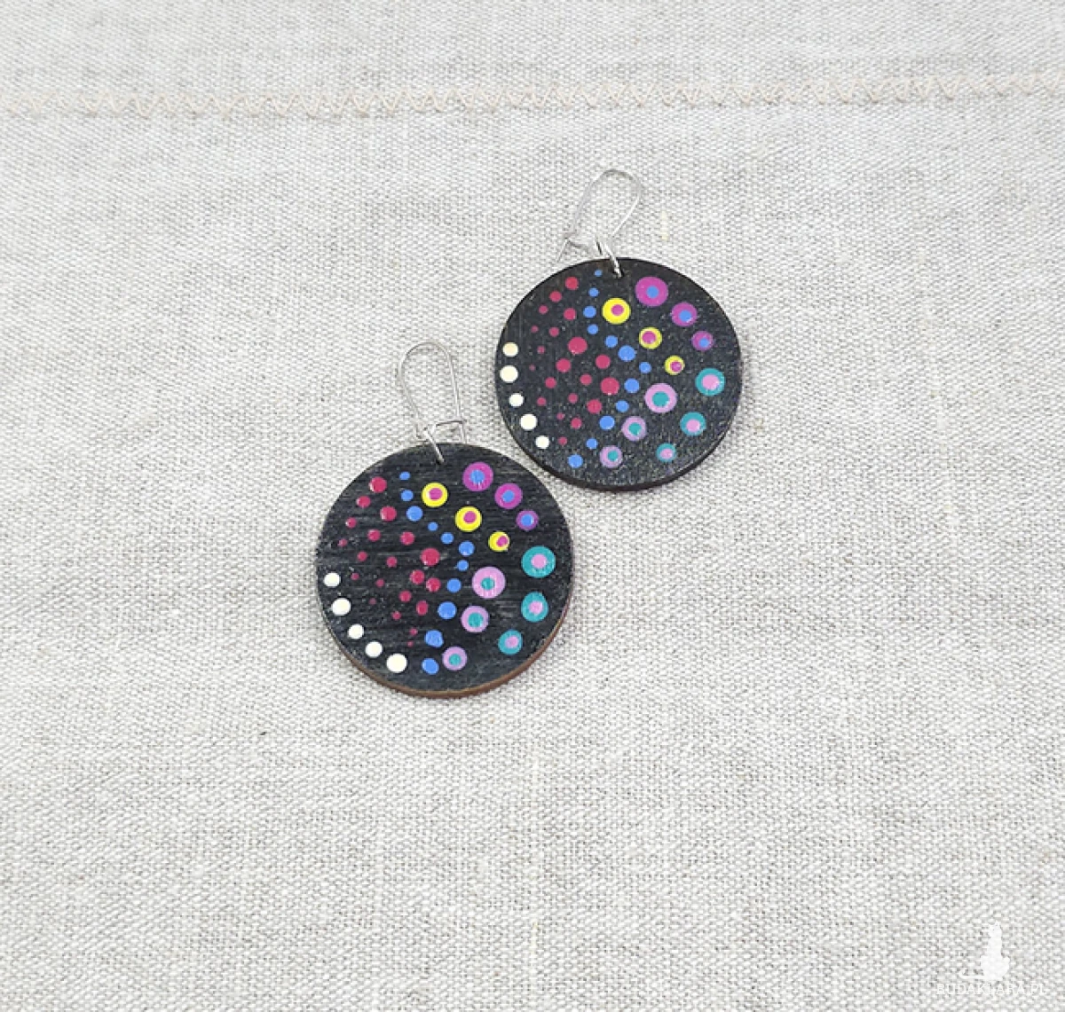 6563 czarne, kolorowe, ręcznie malowane kolczyki