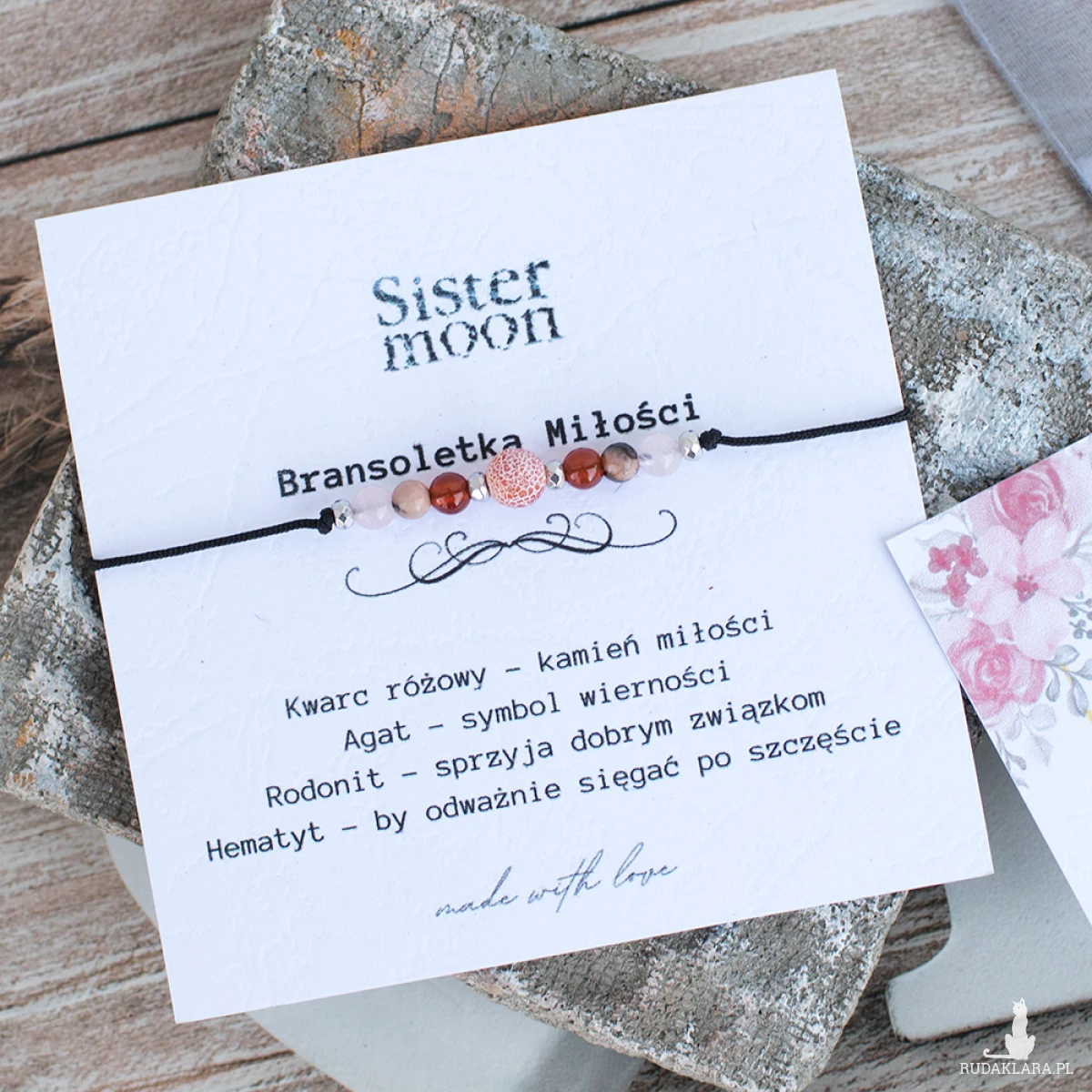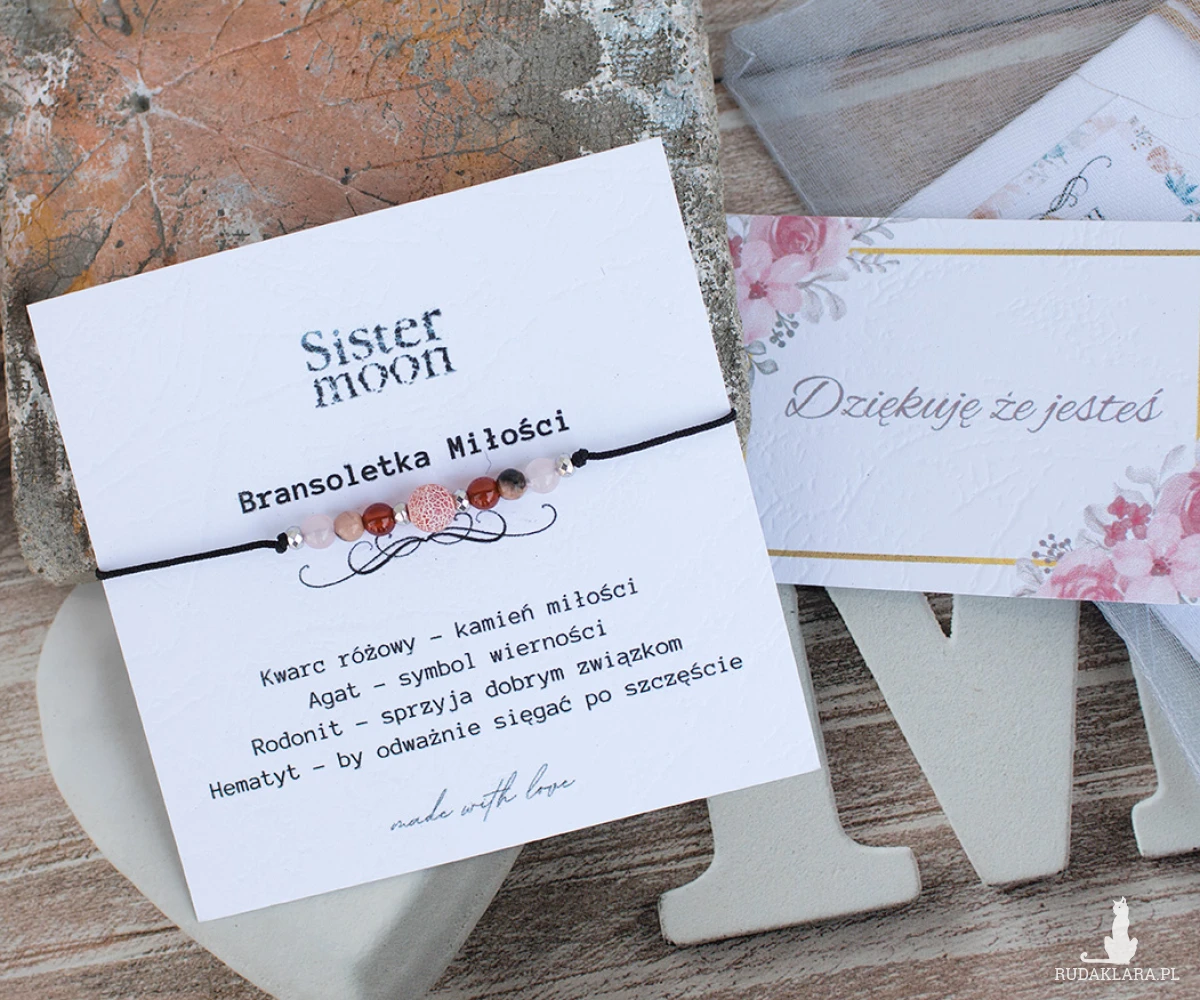 Bransoletkę wysyłam zapakowaną w kartonową kopertkę przewiązaną lnianą nicią i woreczek z organzy, z dołączoną etykietą opisową.