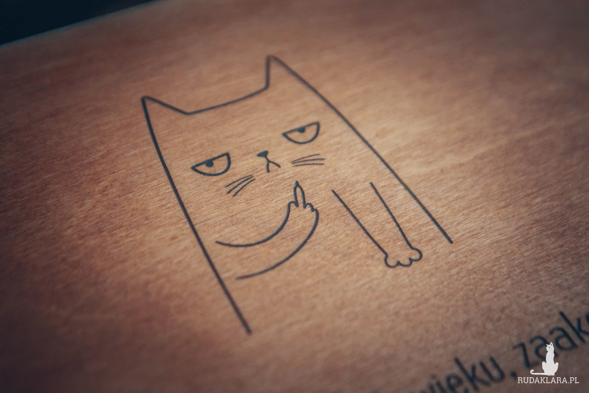 🔹 Grawer: Humorystyczny napis + rysunek kota 😼