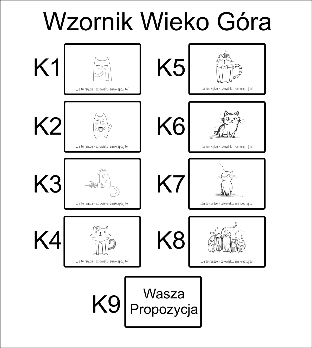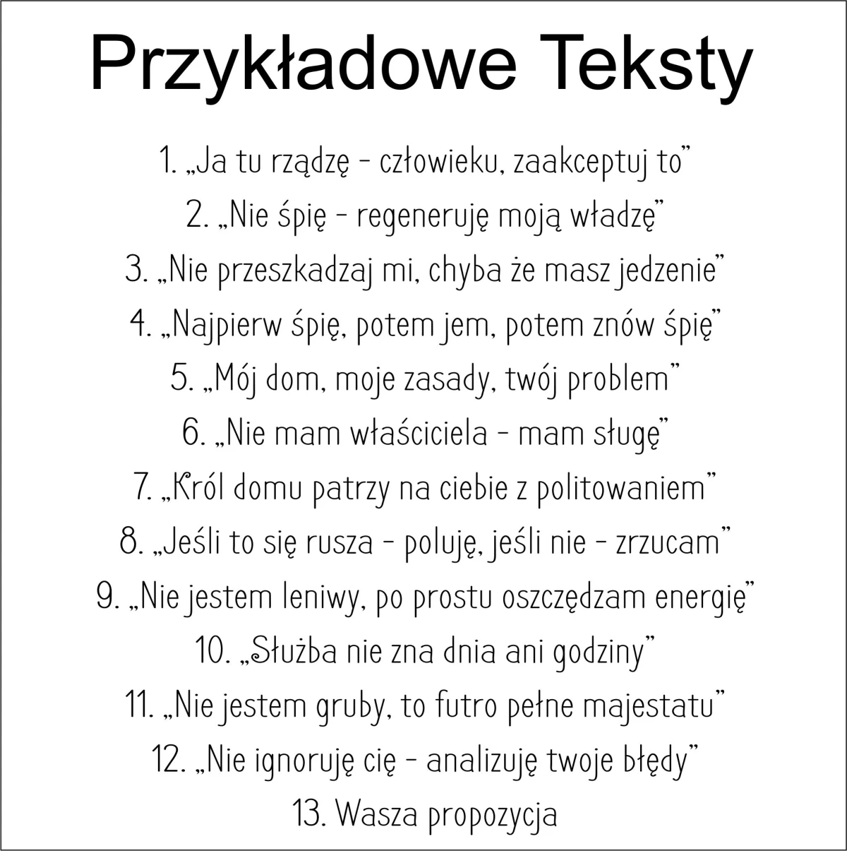 5️⃣Hasło z wzornika – wybierz zabawny napis, który najlepiej odda charakter Twojego kota