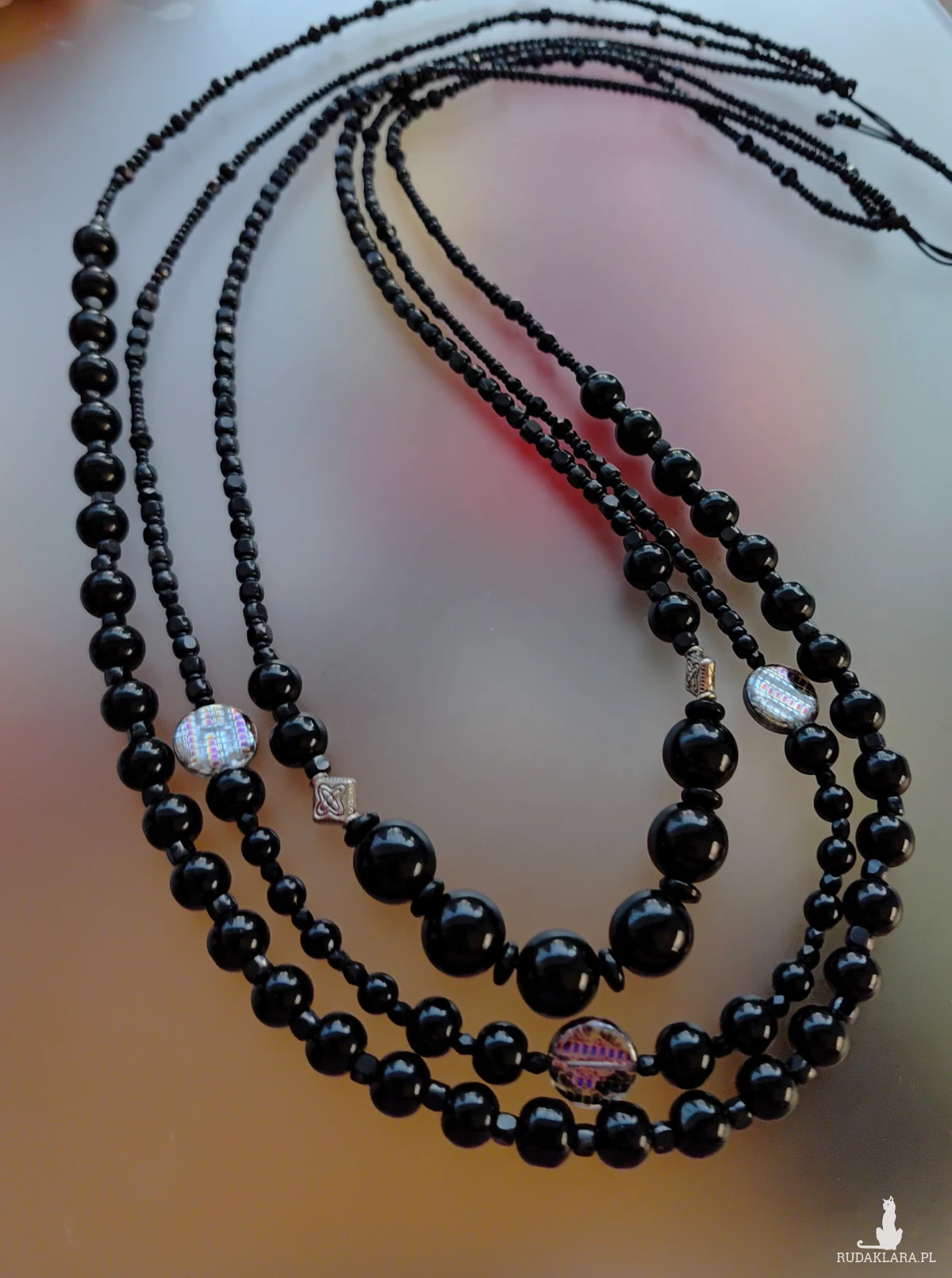 onyx kamień, czeskie szkło, sznurek syntetyczny