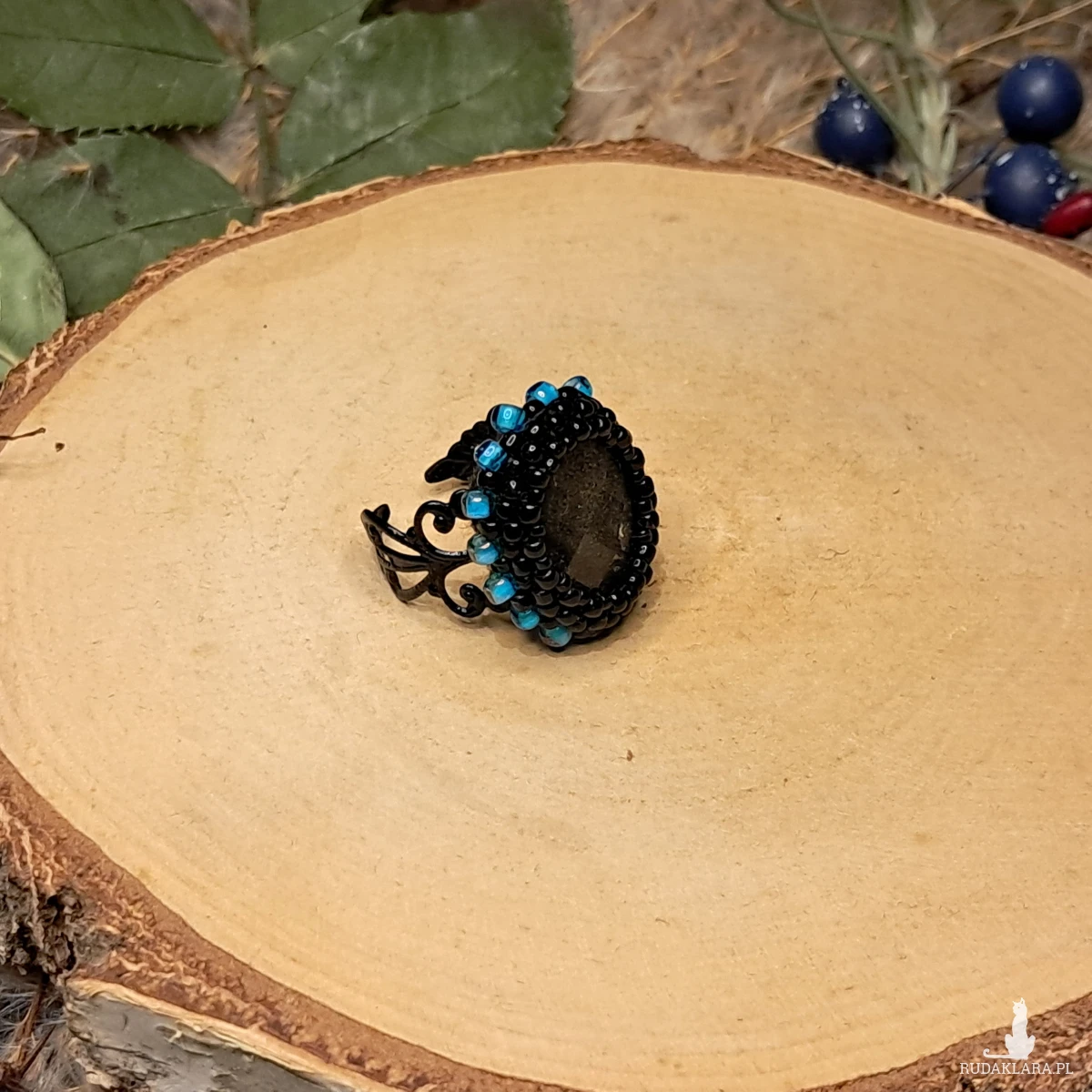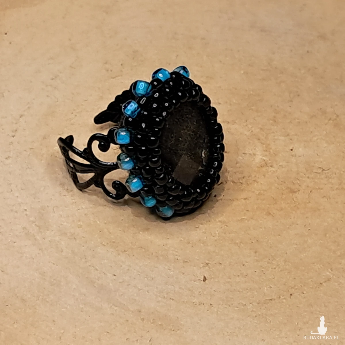 Elegancki pierścionek ręcznie wykonany z japońskich, szklanych koralików, który zachwyca subtelnym połączeniem czerni z niebieskimi akcentami. Jego minimalistyczny design sprawia, że staje się wyjątkowym dodatkiem do każdej stylizacji, idealnym uzupełnieniem zarówno codziennych, jak i wieczorowych outfitów.