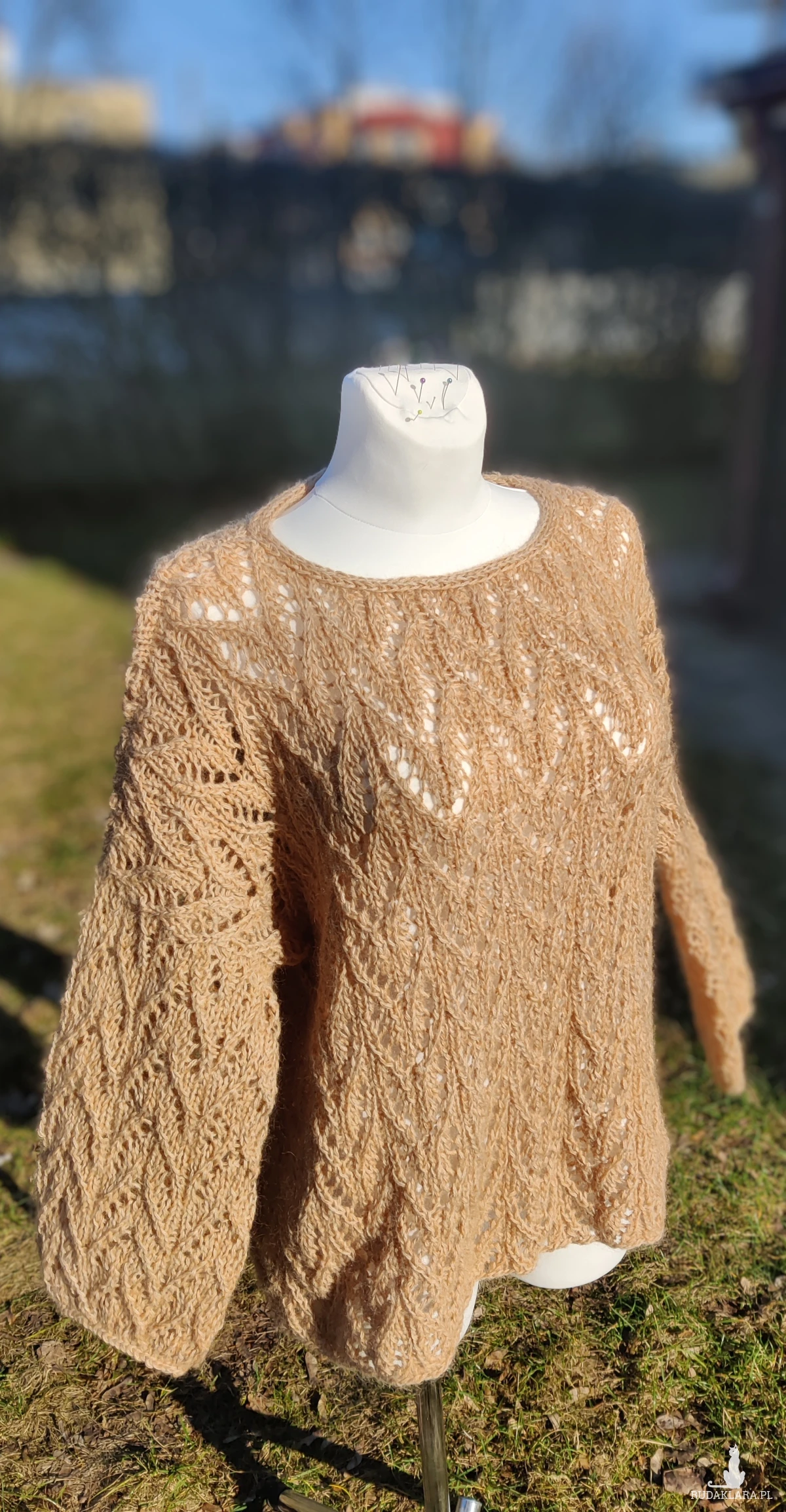 Sweterek ażurowy z naturalnych włókien wielbłąda 🐫 i kid silk.
