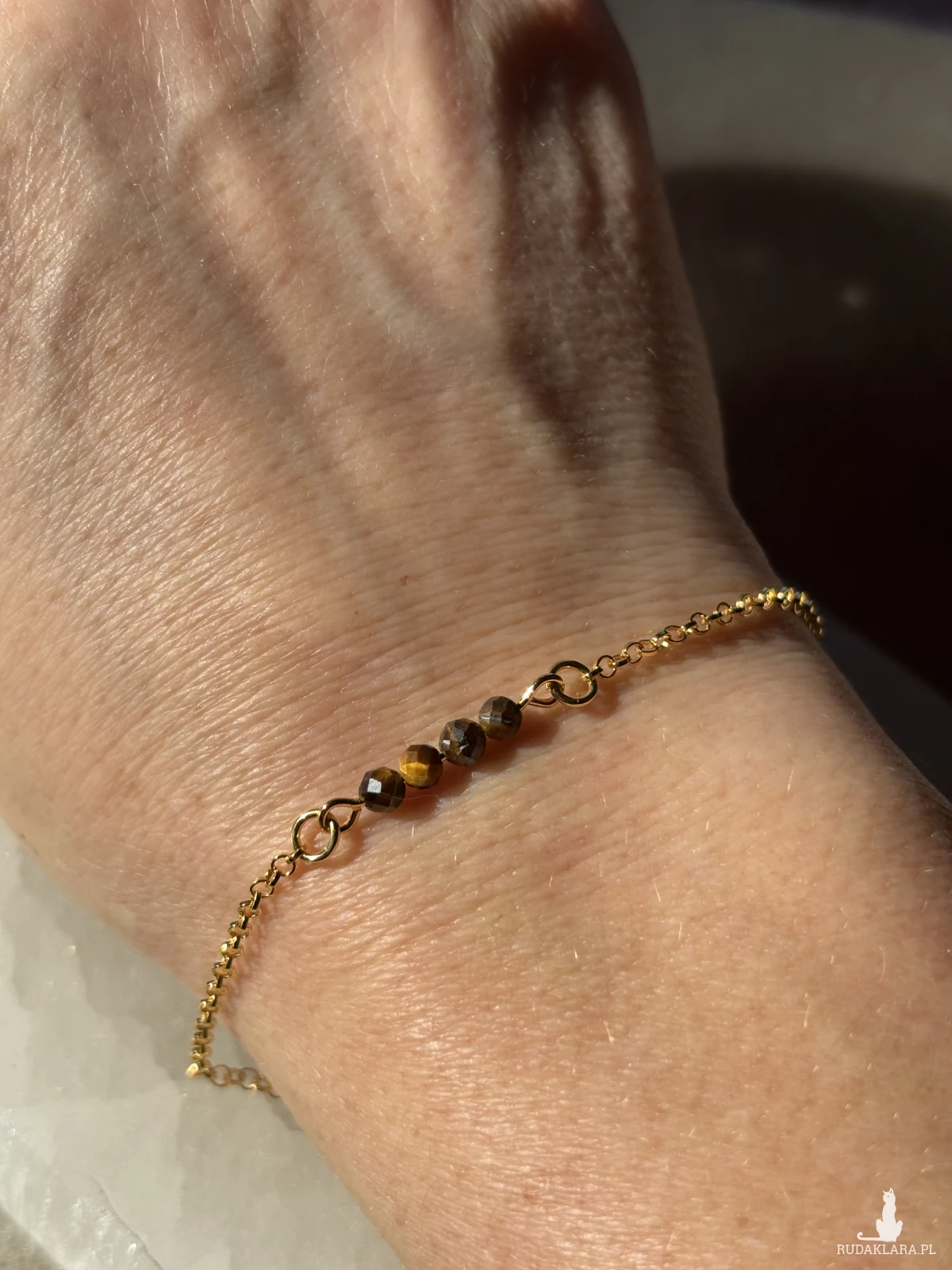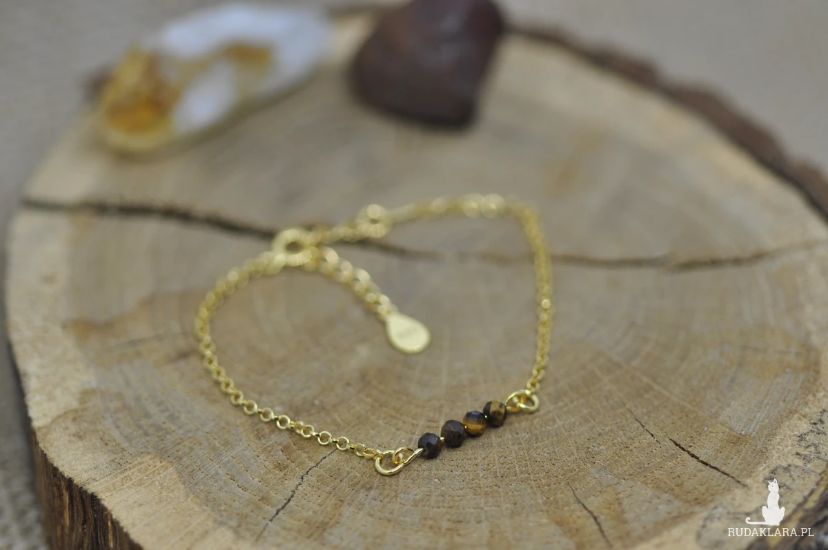 Delikatna bransoletka łańcuszkowa ze srebra próby 925 pokrytego 24 karatowym złotem z kamieniem naturalnym - Tygrysim Okiem💎
