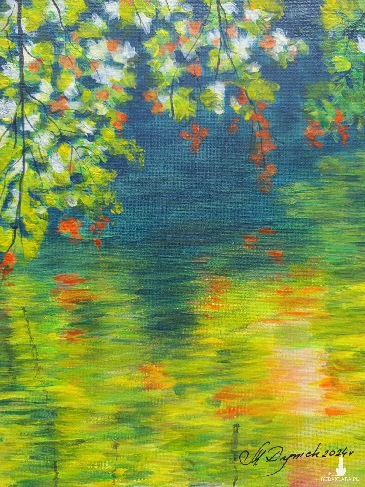 Jeden z kilkudziesięciu ręcznie malowanych obrazów, przedstawiających pejzaże, których motywem przewodnim jest piękno lasów, gór, potoków, zmieniająca się roślinność na przestrzeni dni i miesięcy. Krajobrazy tworzą serie kolorystyczne: "wiosna", "lato", "jesień", "zima".
