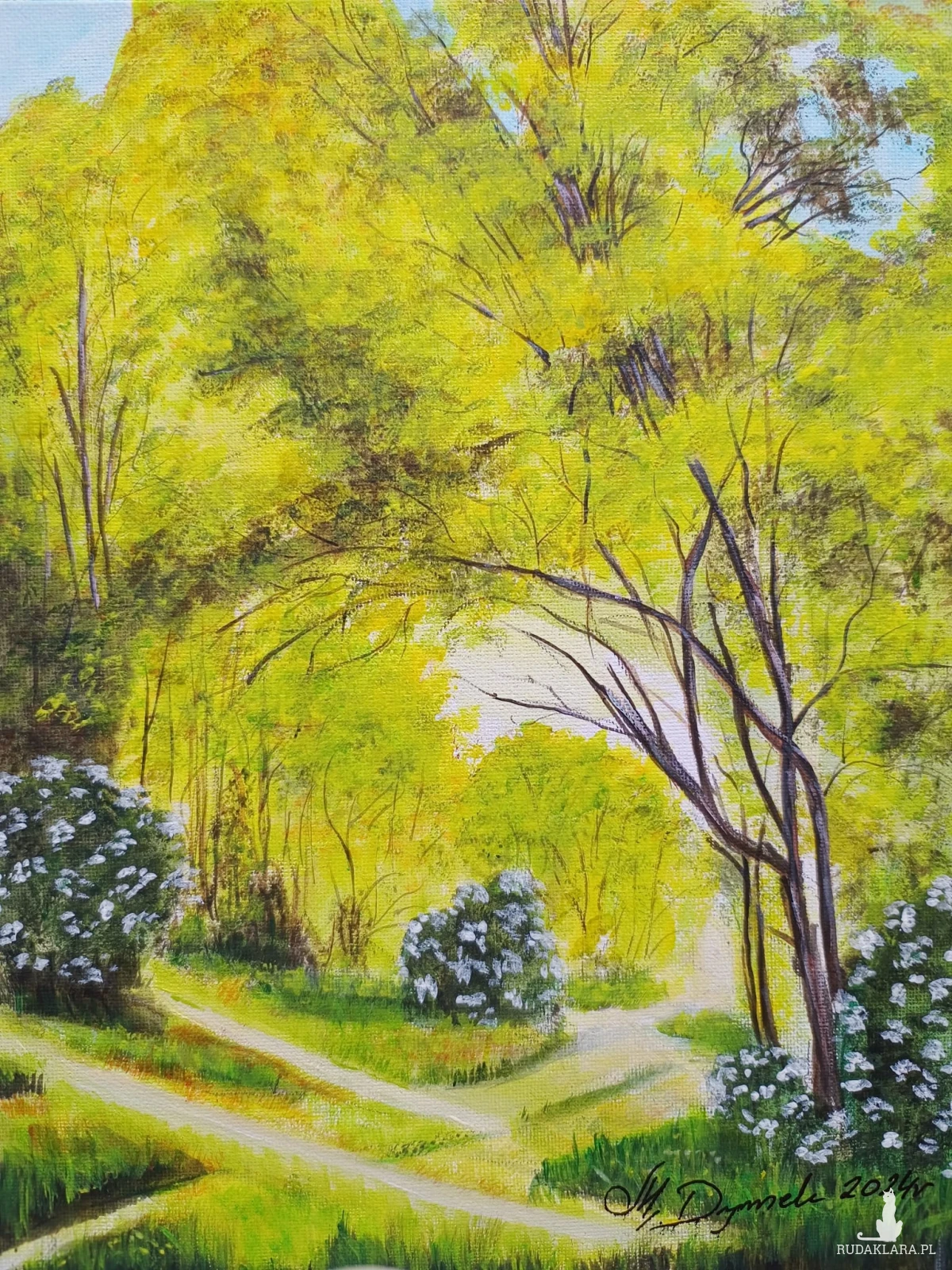 Jeden z kilkudziesięciu ręcznie malowanych obrazów, przedstawiających pejzaże, których motywem przewodnim jest piękno lasów, gór, potoków, zmieniająca się roślinność na przestrzeni dni i miesięcy. Krajobrazy tworzą serie kolorystyczne: "wiosna", "lato", "jesień", "zima".