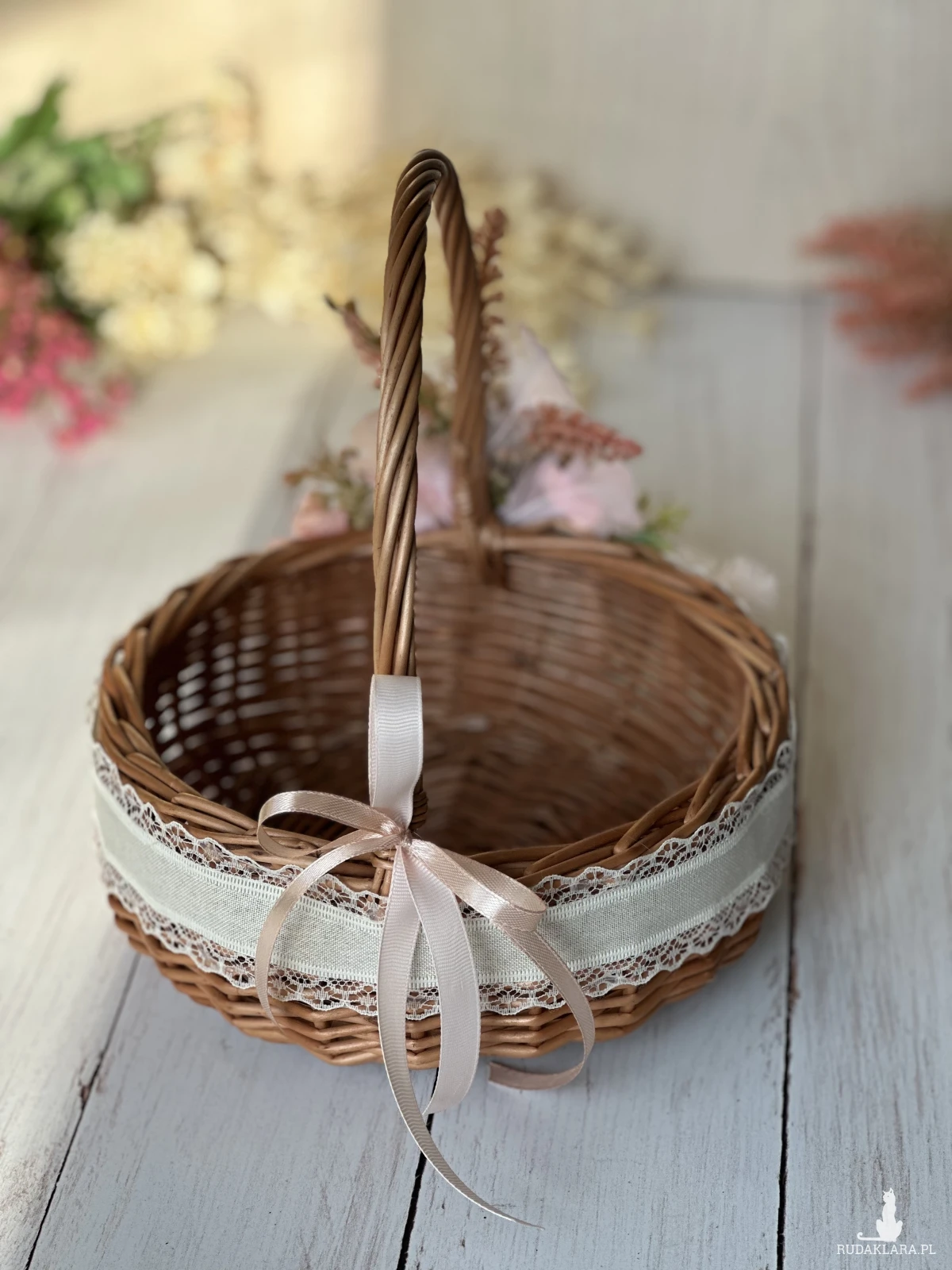 Koszyczek wielkanocny, wiklinowy z ozdobą, do święcenia