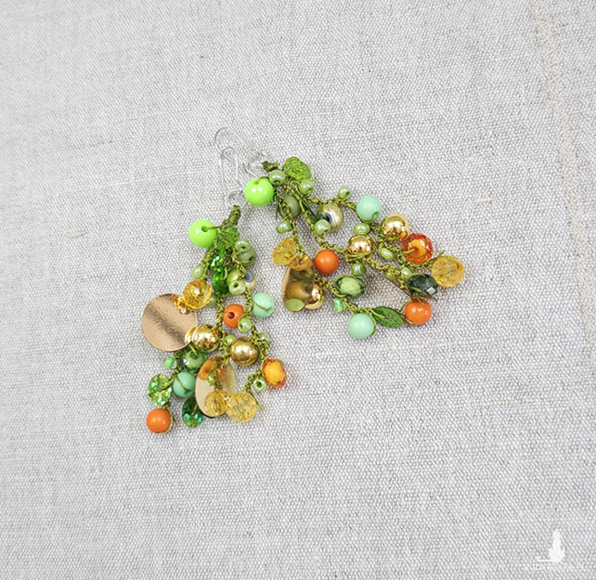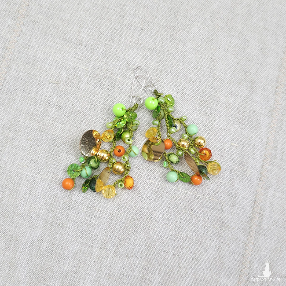6653 zielone, pomarańczowe, złote kolczyki; długie kolczyki