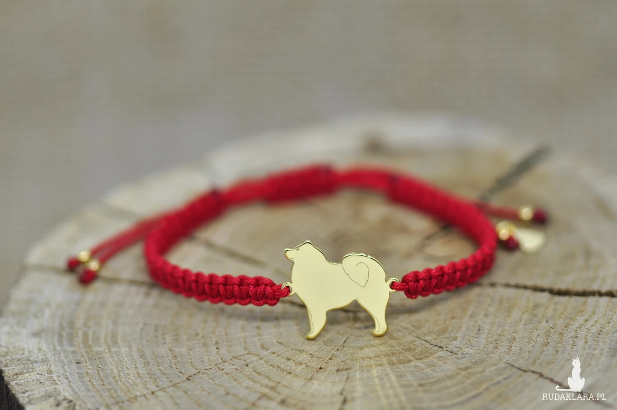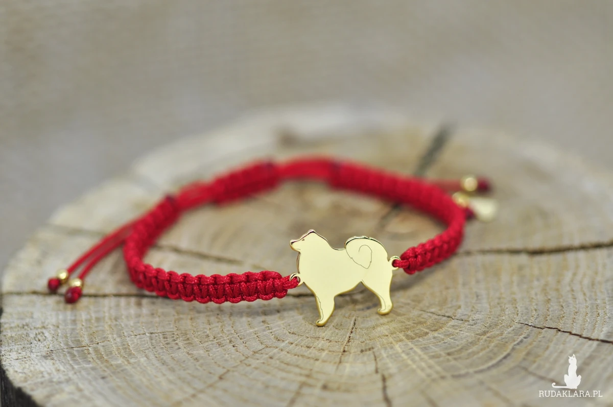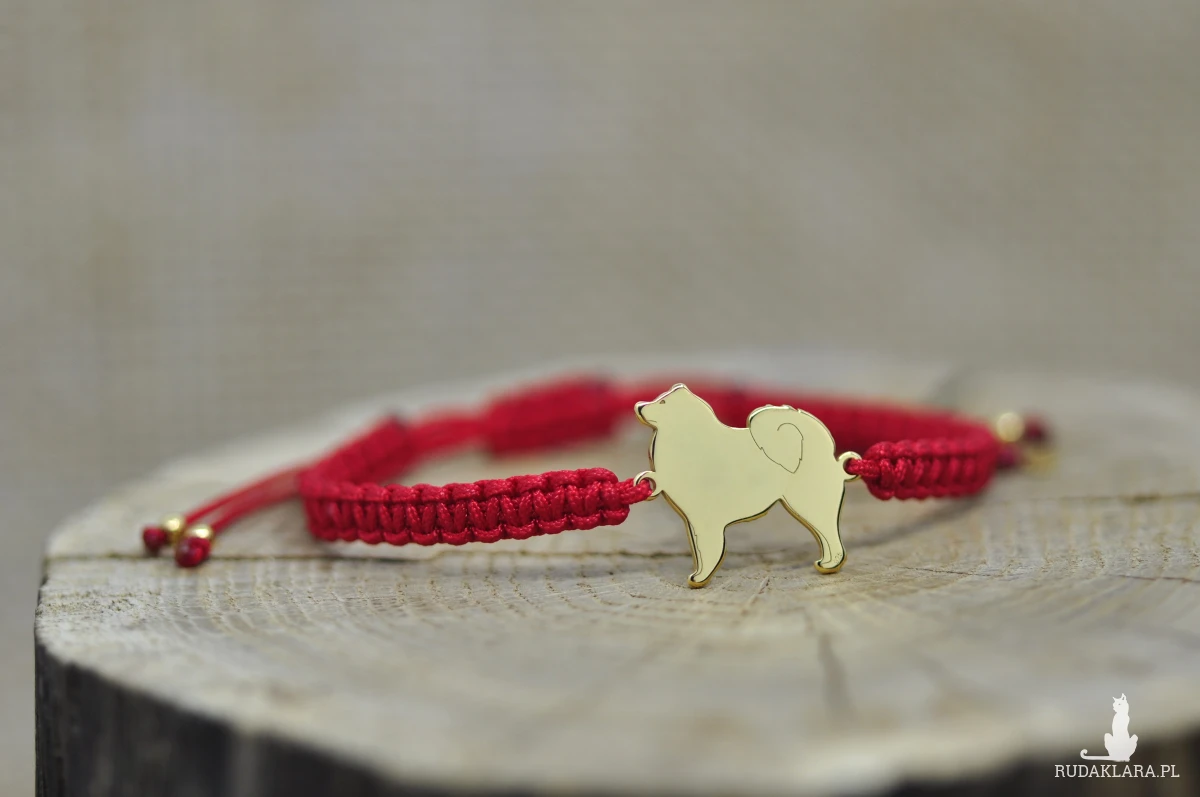 Samojed ze srebrnej blachy próby 925, wymiary pieska: 20 x 17,3 mm, grubość 0,8 mm, srebrne kulki.