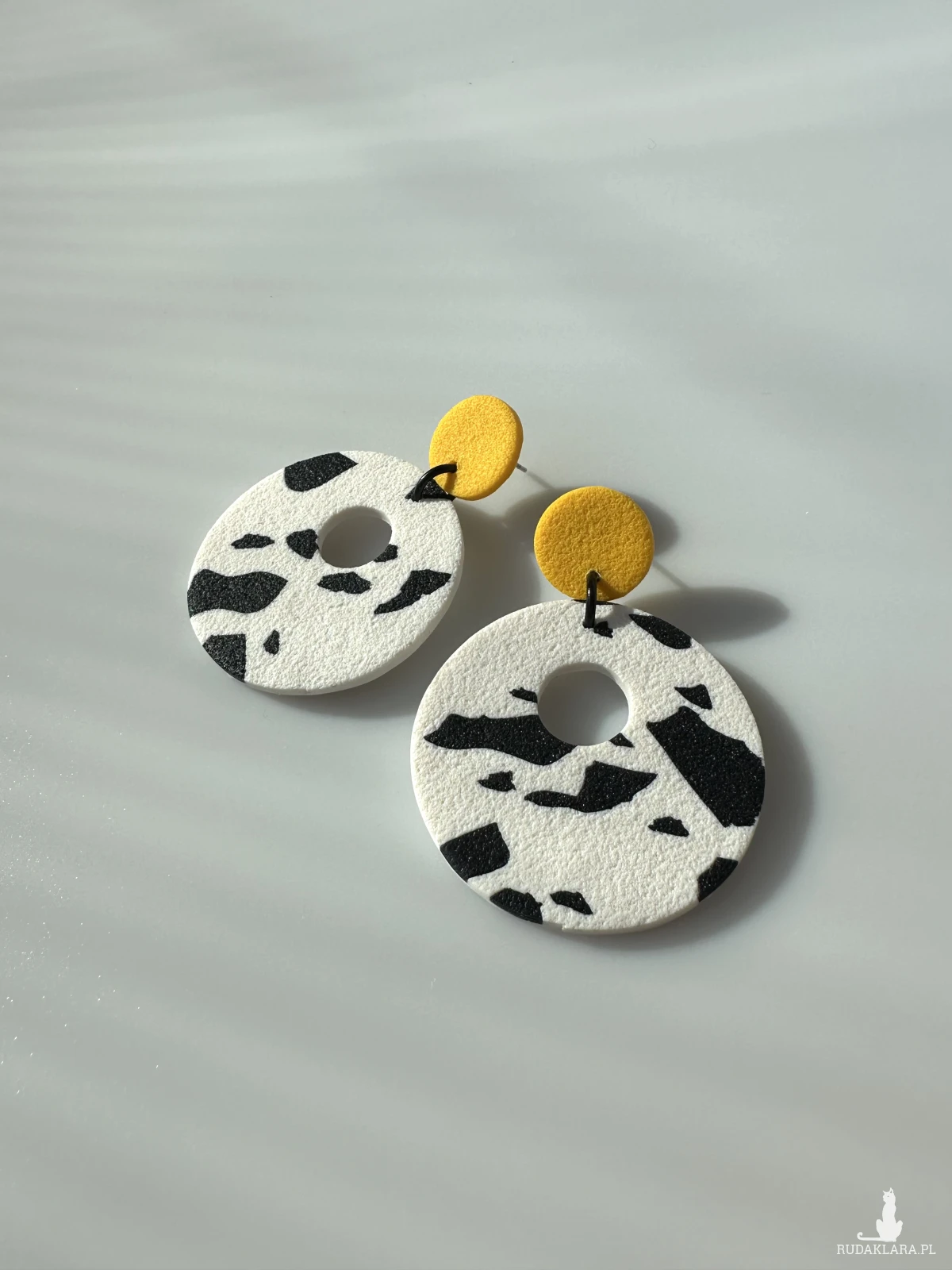Klasyczny kształt kolczyków (podwójne koła) w kolorowej i odważnej odsłonie. Krówki to propozycja kolczyków, które pasują do wszystkiego. Nikt nie przejdzie obok nich obojętnie!