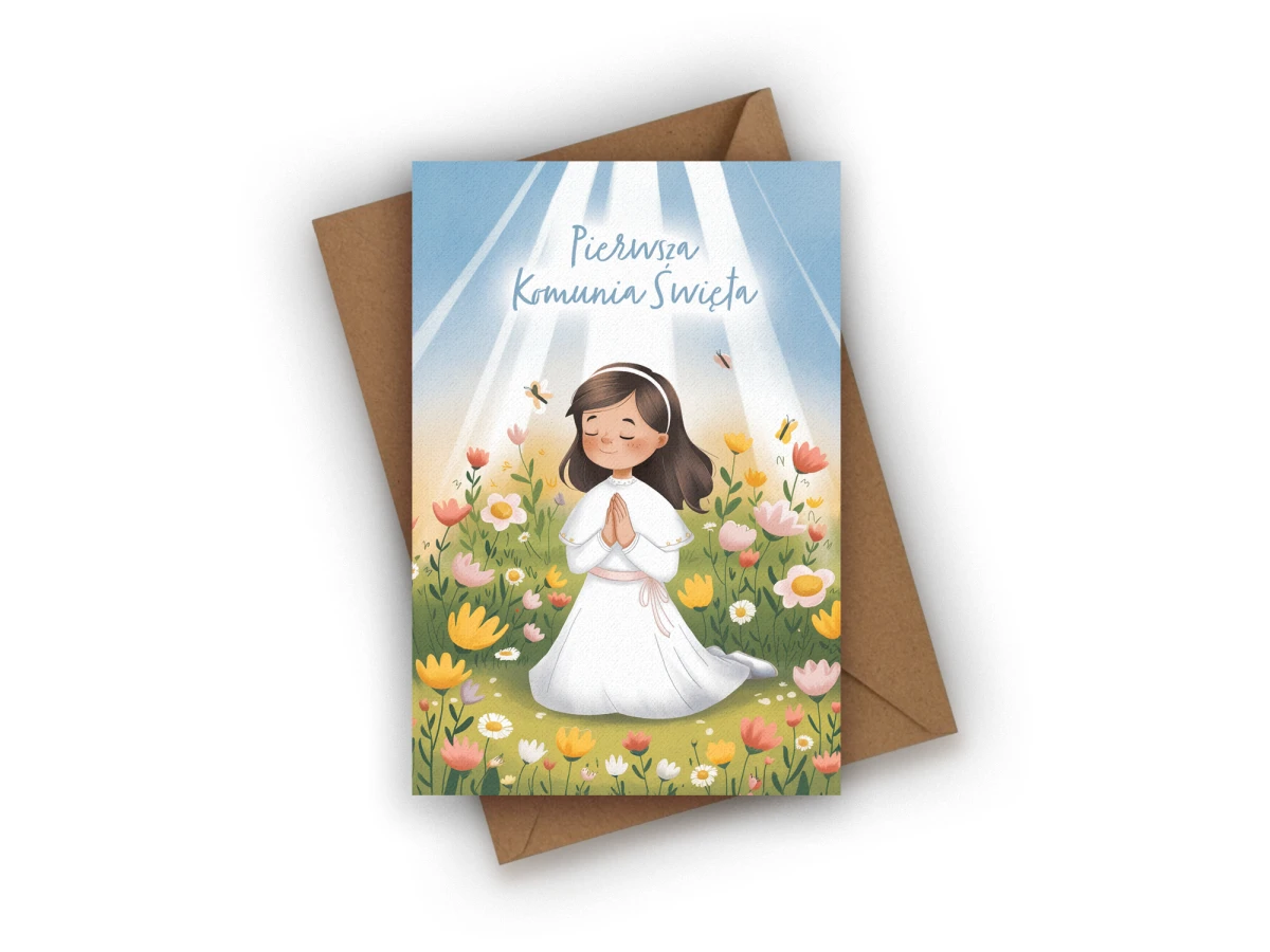 Kartka z okazji Komunii Świętej- Pierwsza Komunia Święta dla dziewczynki