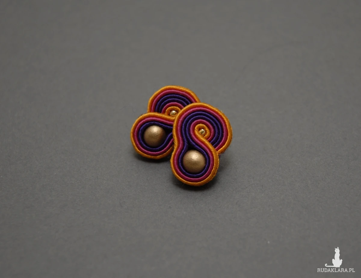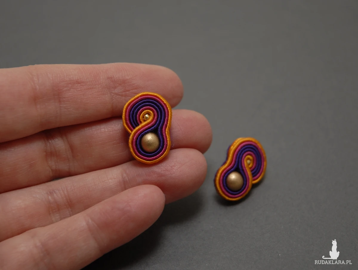 małe, fioletowo-pomarańczowe kolczyki sutasz