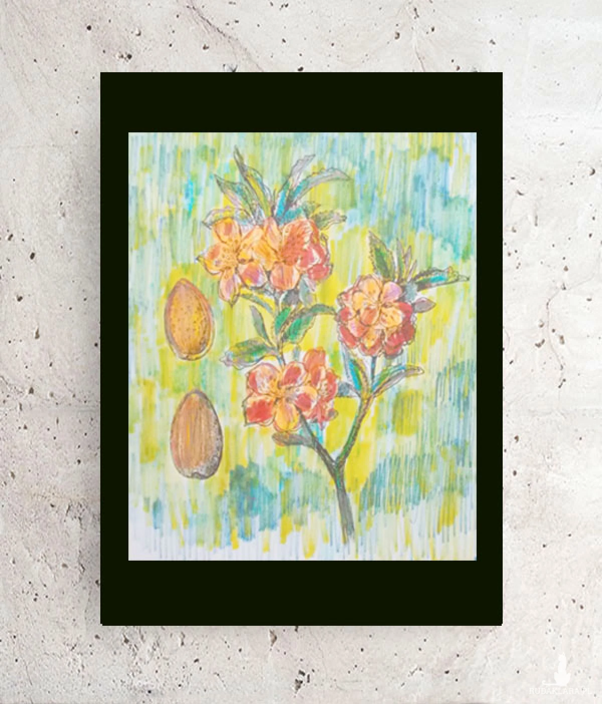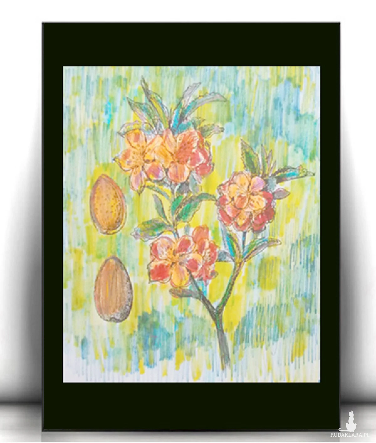 Nowy, kolorowy obrazek w stylu retro. Botaniczna ilustracja na czarnym kartoniku 21 x 30 cm. Grafika do samodzielnej oprawy. Plakat wystarczy tylko umieścić w ramce A4. Poster na ścianę do jadalni, sypialni, kuchni, przedpokoju, salonu, gabinetu, pokoju młodzieżowego, biura, garderoby, holu itp. Plakat będzie pasował do wnętrz urządzonych w stylu boho, mieszanym, vintage, rustykalnym, tradycyjnym, klasycznym, podróżniczym, eklektycznym. Przedmiot do dekoracji wnętrz.