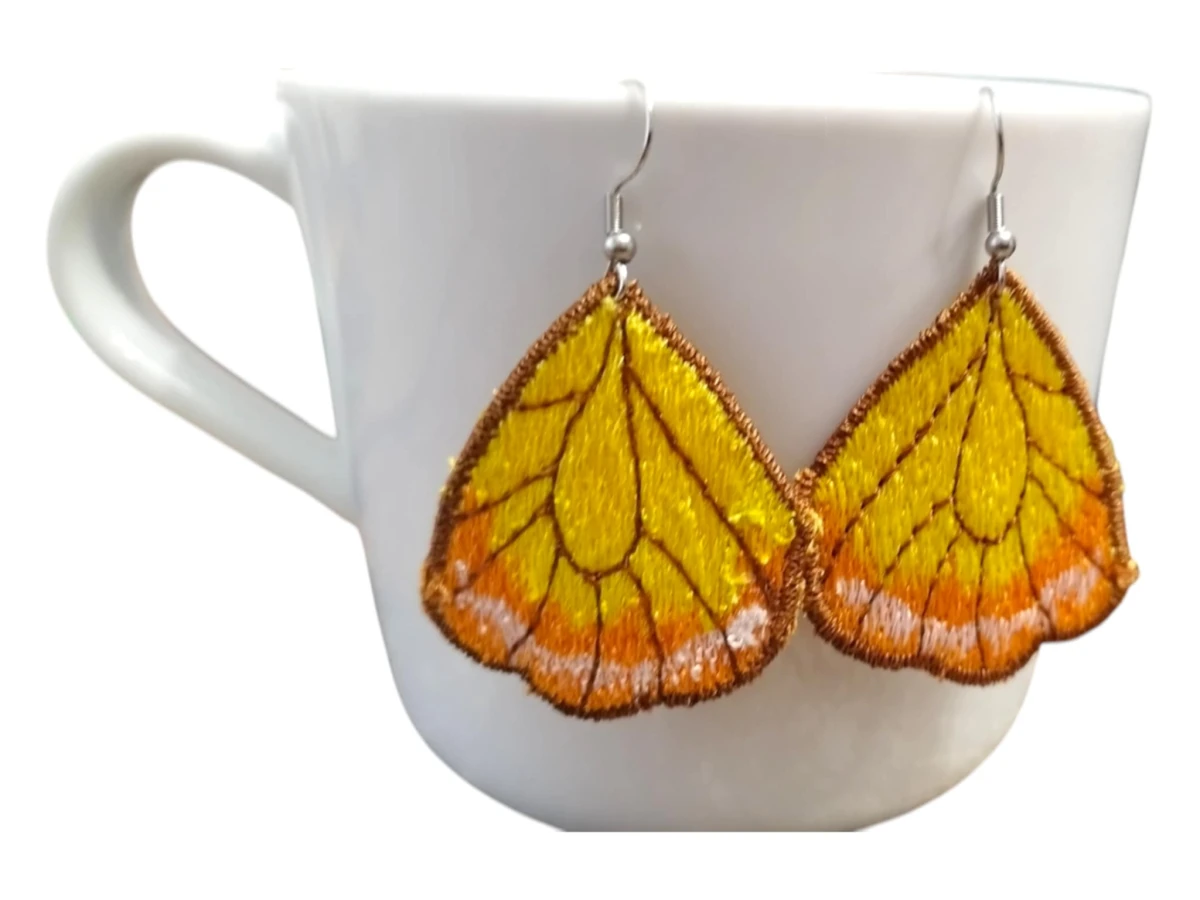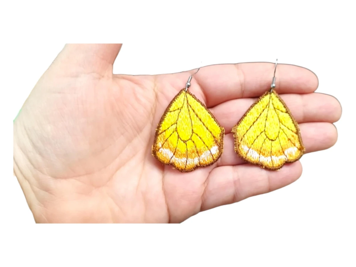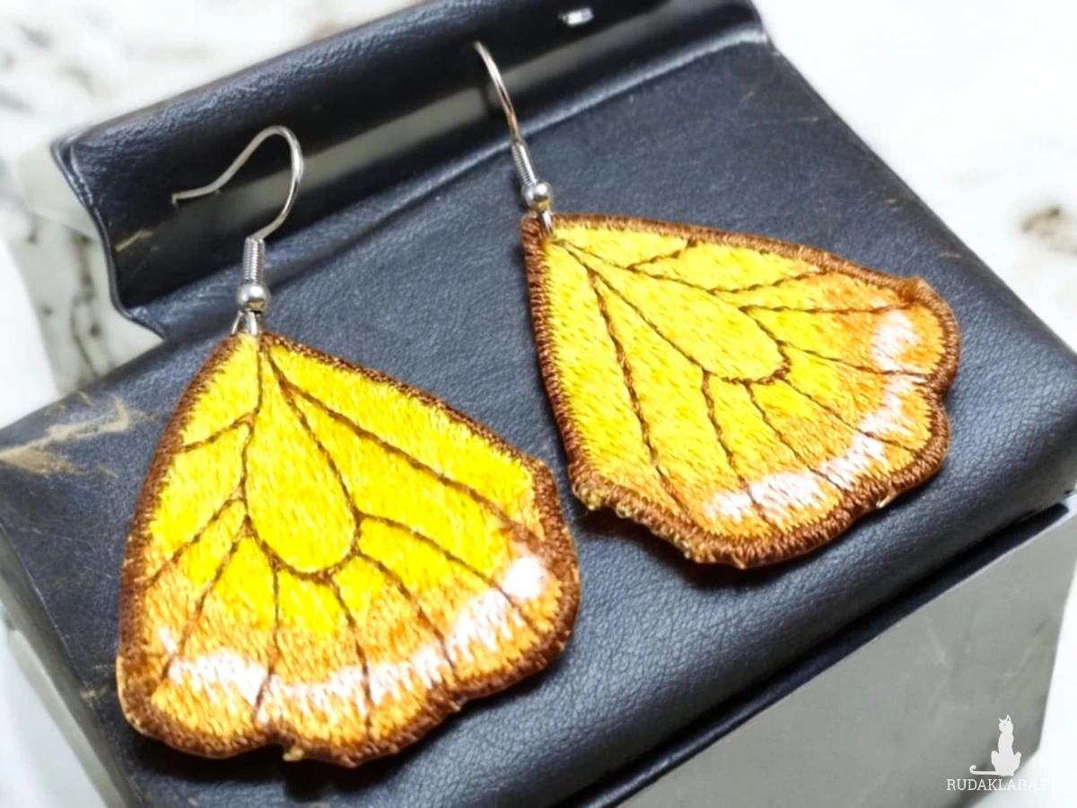 Haftowane kolczyki skrzydła motyla odcienie żółtego