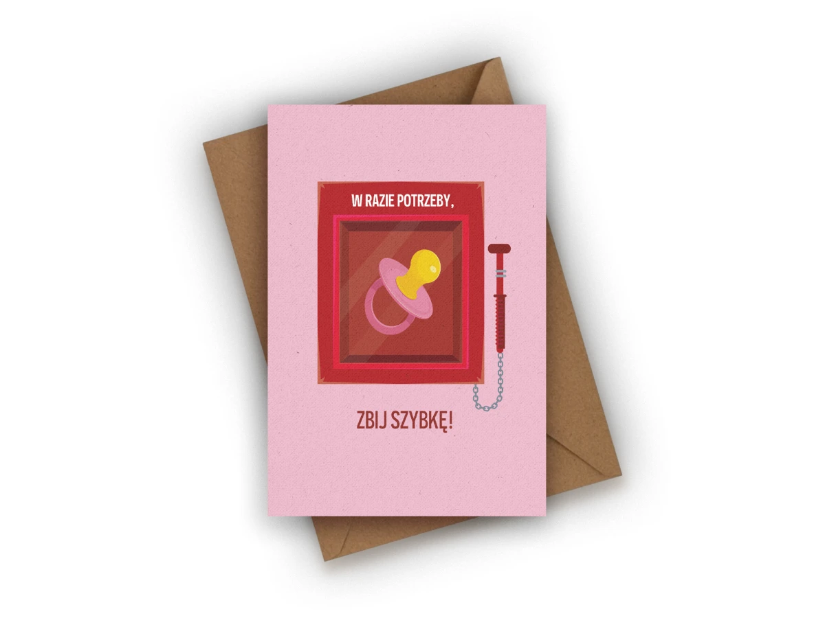 Kartka z okazji narodzin dziecka- W razie potrzeby zbij szybę!